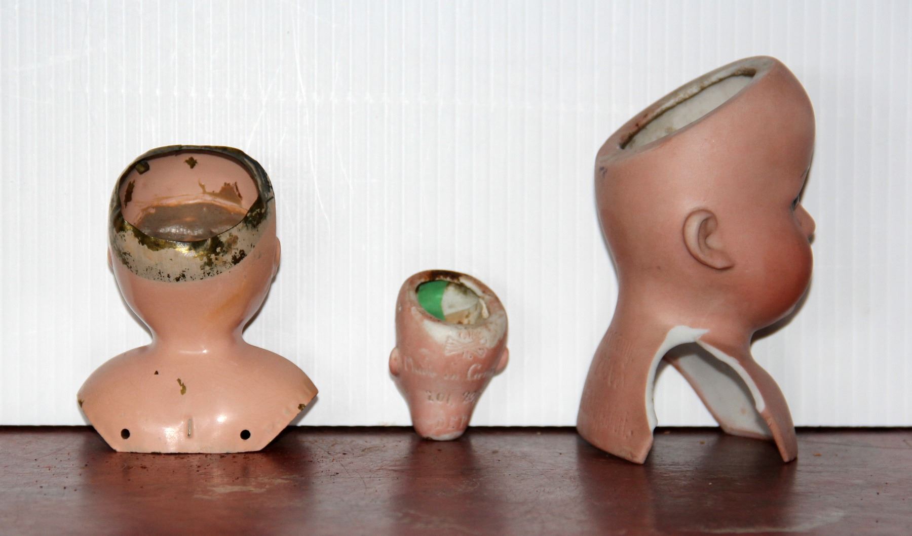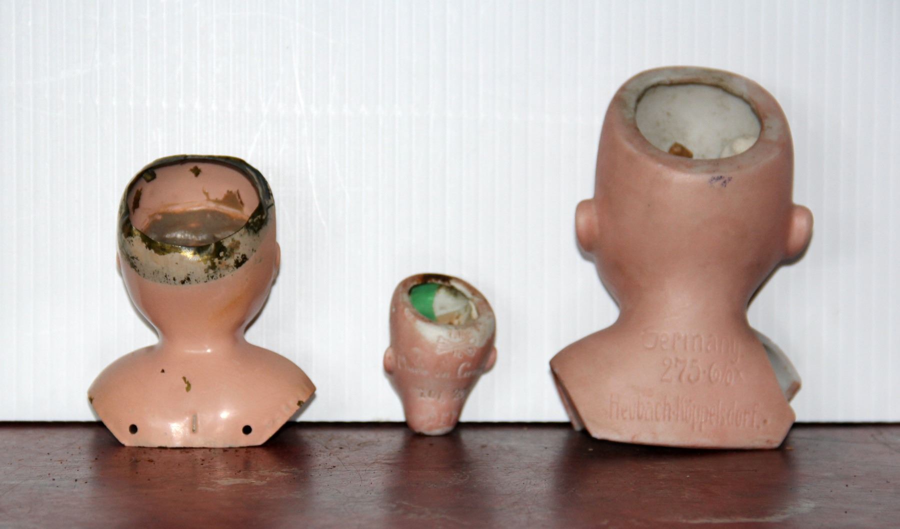 Porcelain Heubach-Koppelsdorf No 275, No 201 Germany and Tin Doll Head, All glass eyes and teeth intact