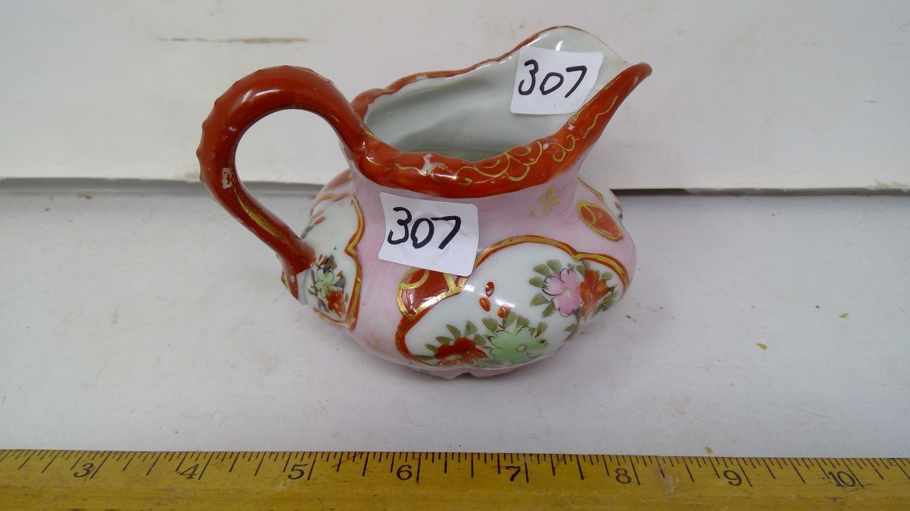Porcelain Teapot, Aide Creamer, Painted, Gilt Height 4"