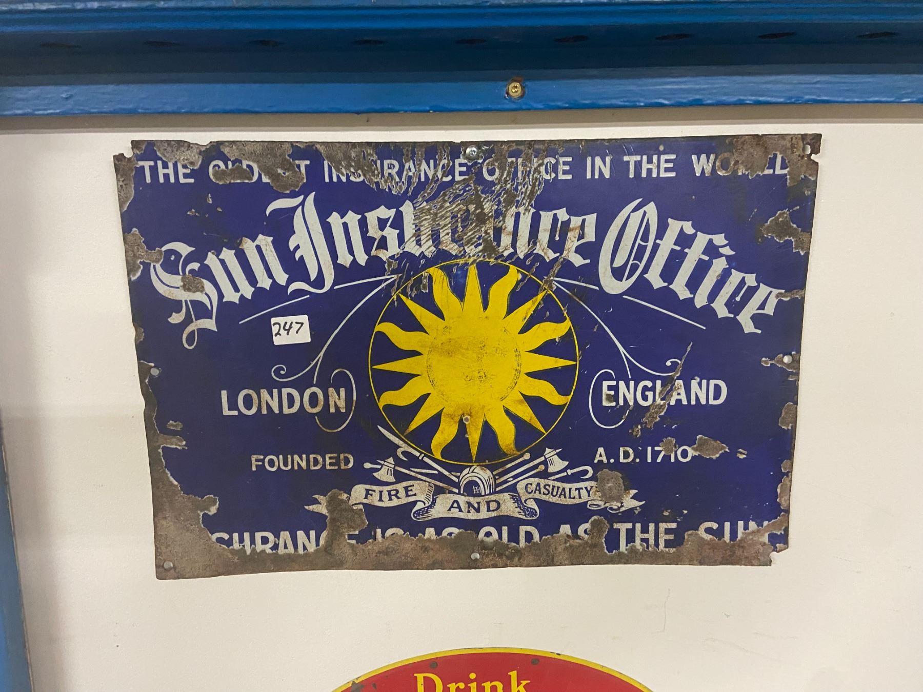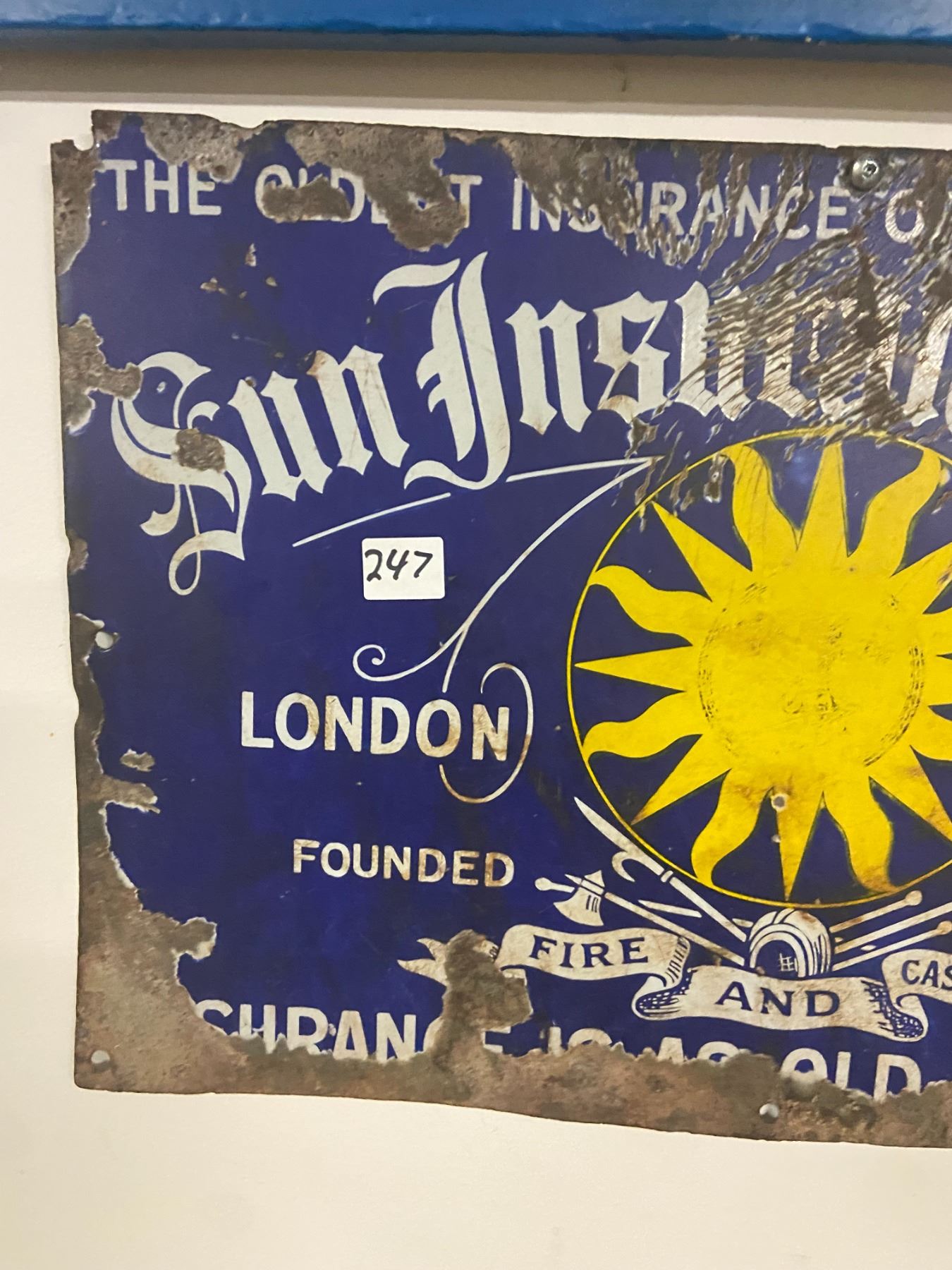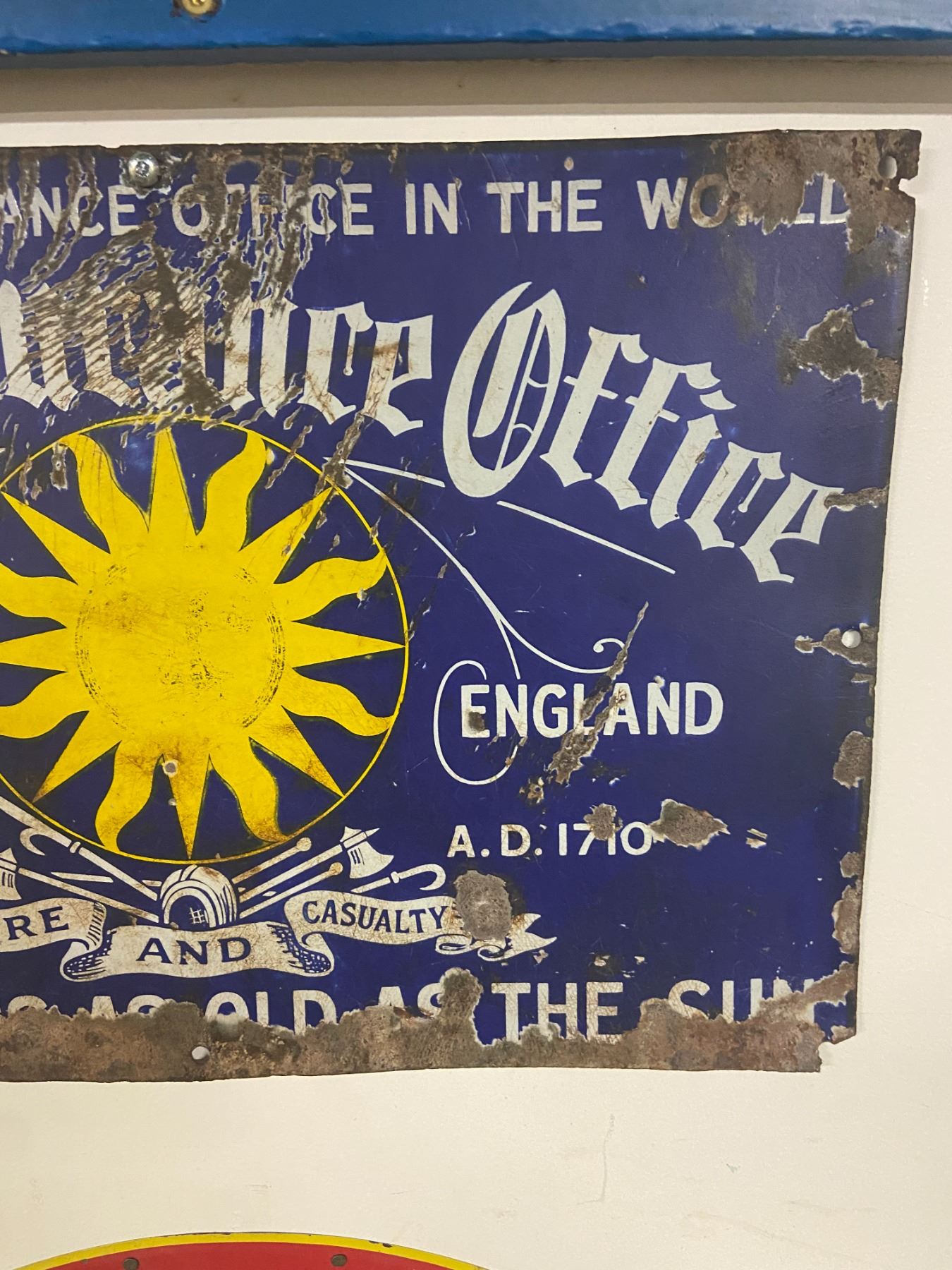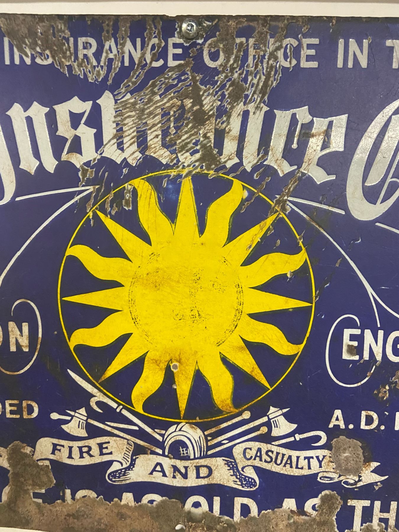 Porcelain sign, sun insurance - 18"x12"