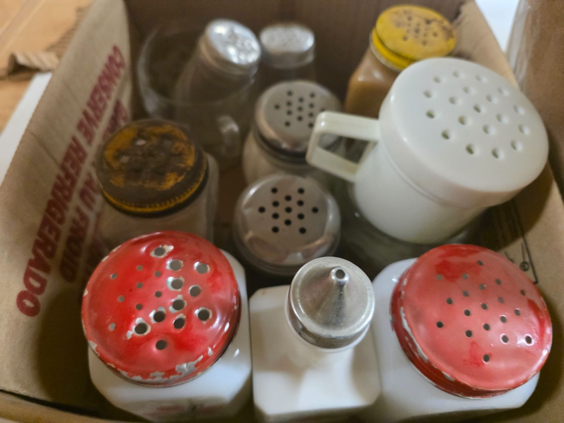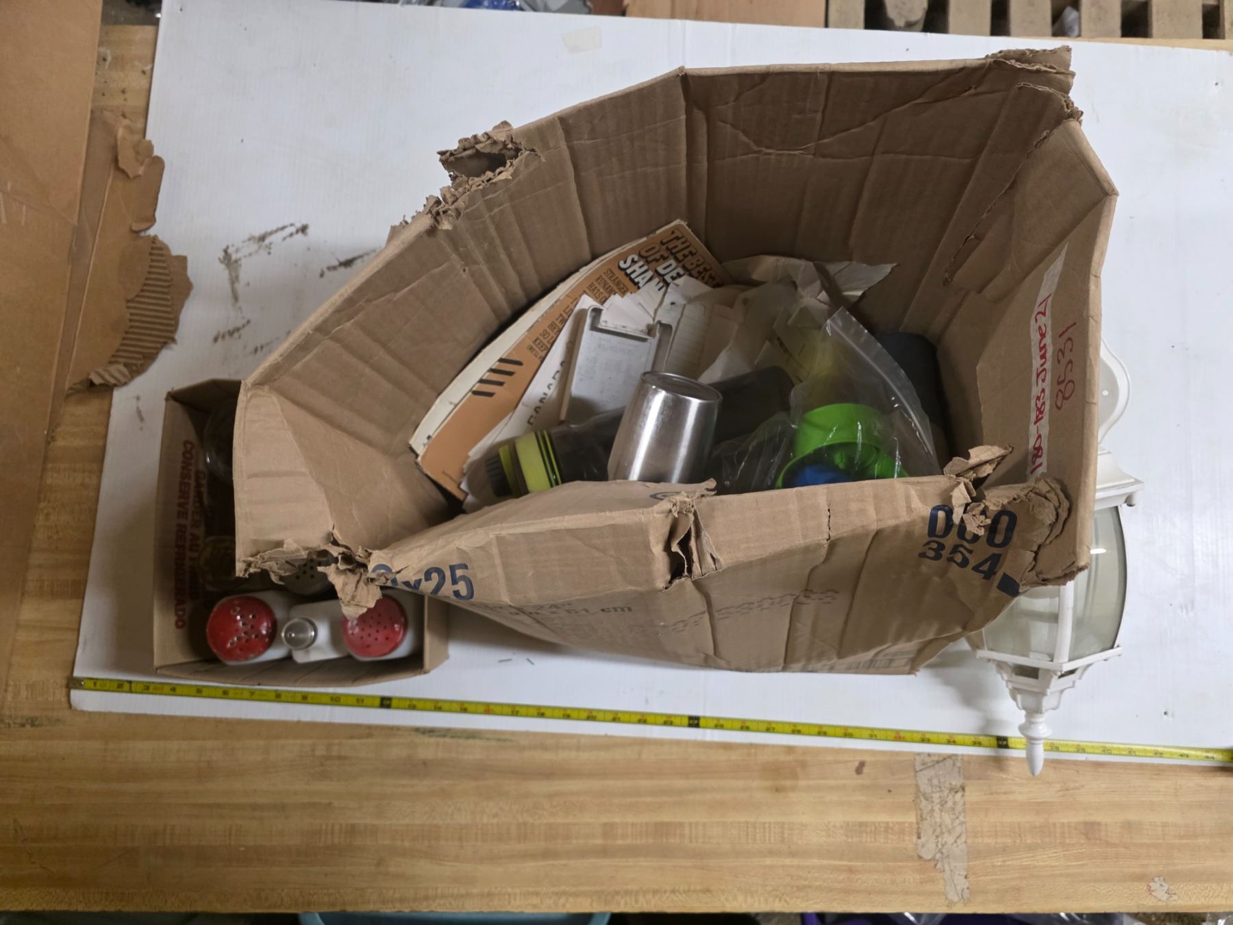 Porch light, salt and pepper shakers and misc items