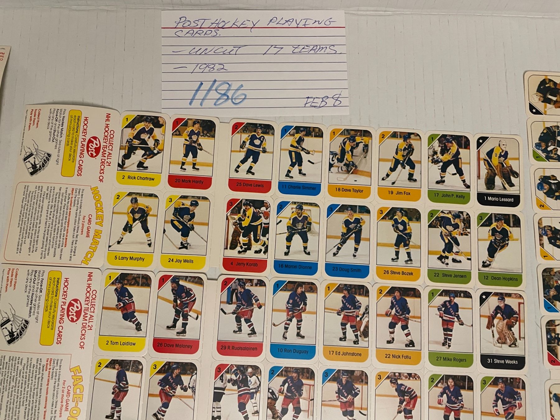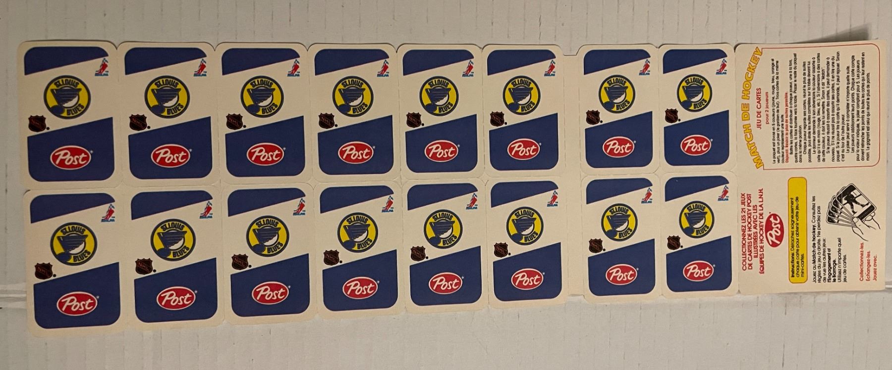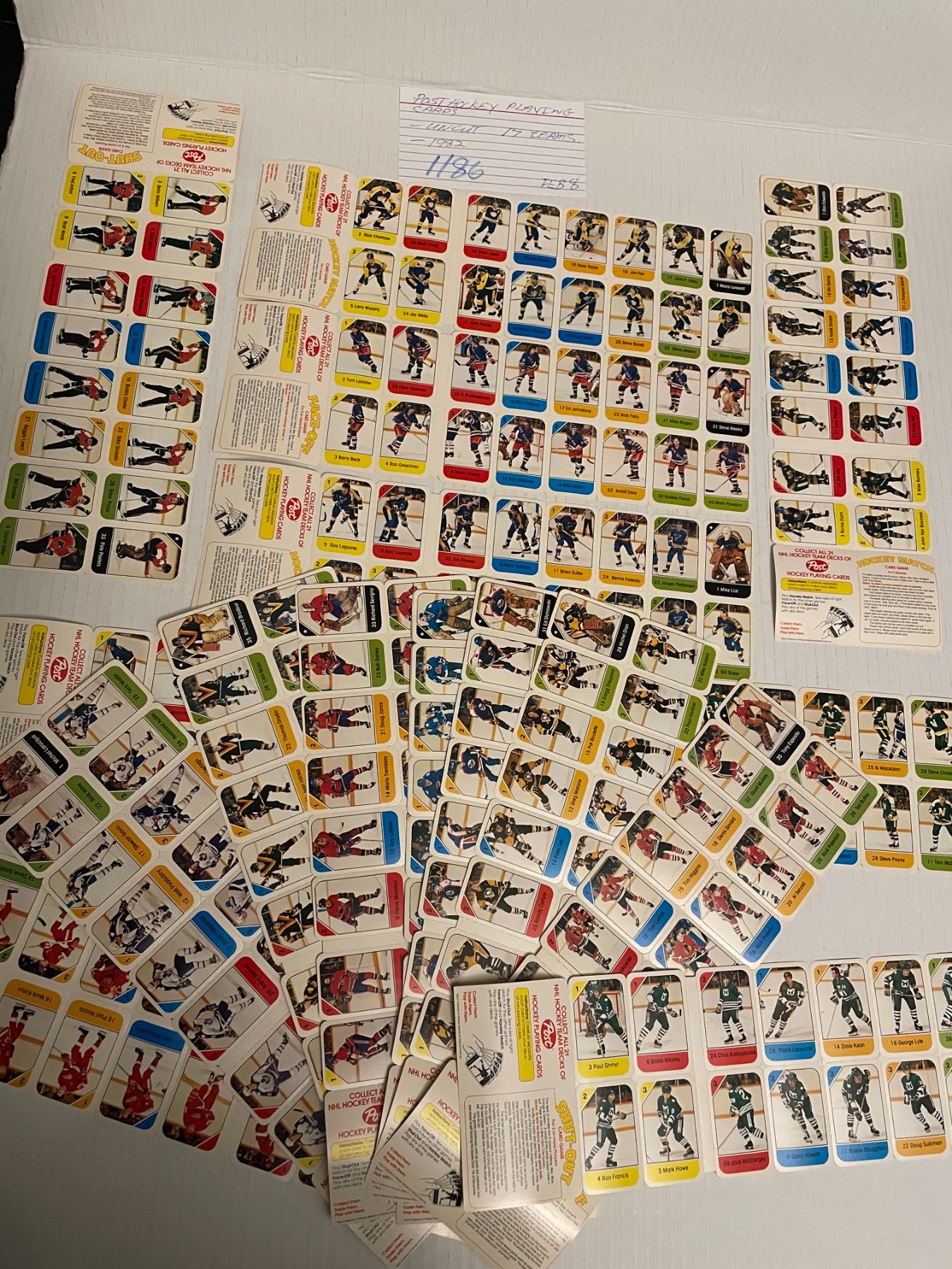 Post hockey playing cards - uncut - 17 teams