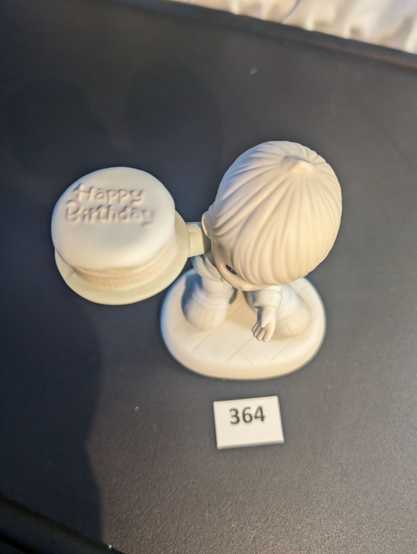 Precious Moments. Little boy with happy birthday cake. "This is the day which the lord has made" 1986
