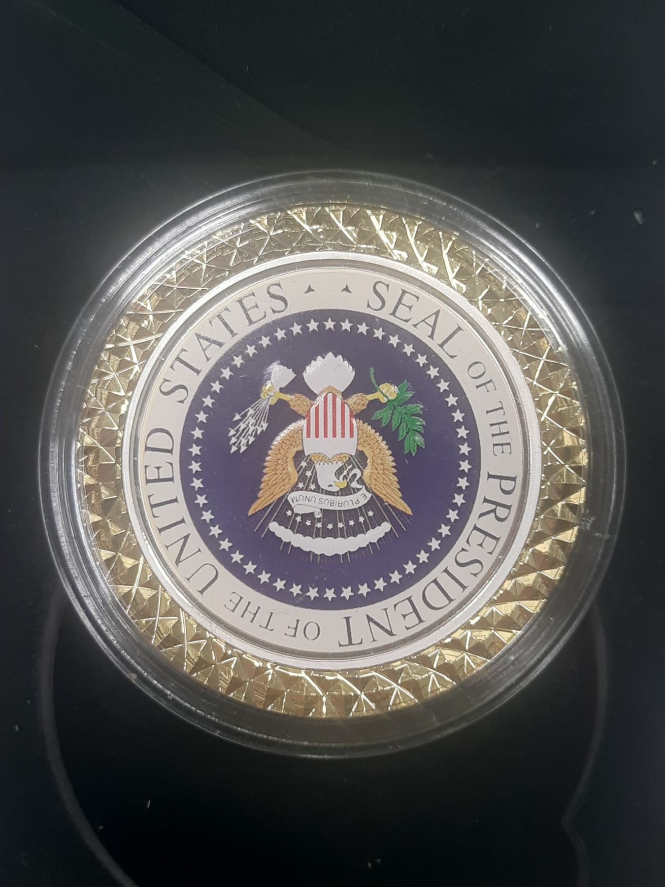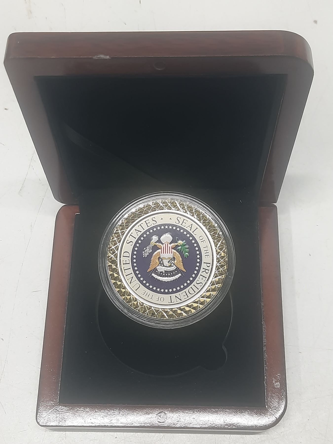 Presidential Seal USA Coin in Mahogany Box.