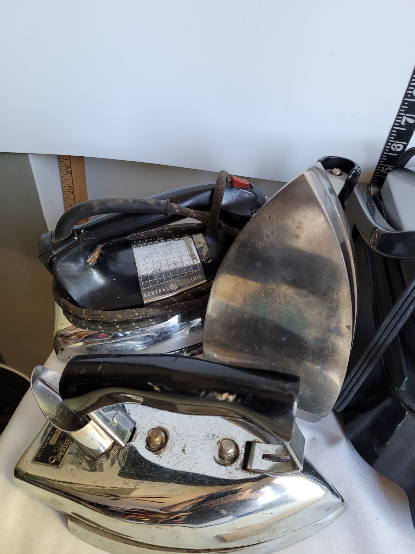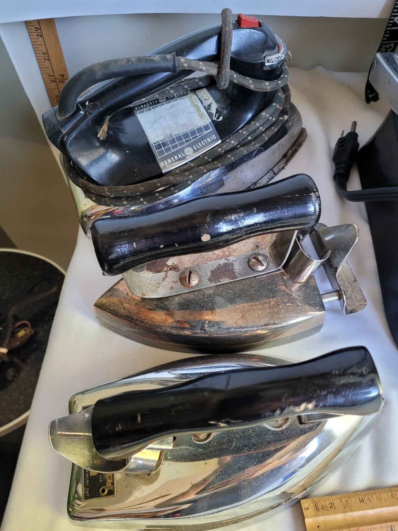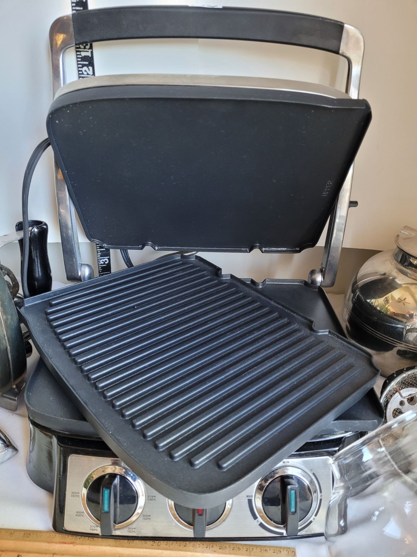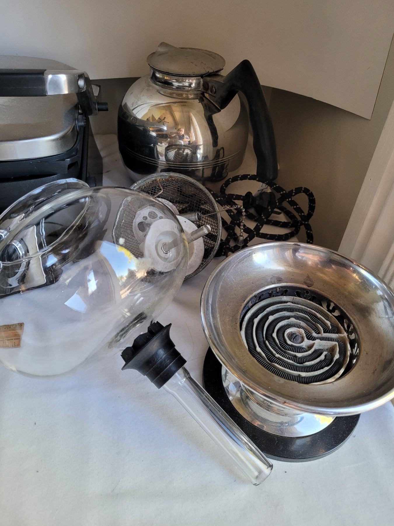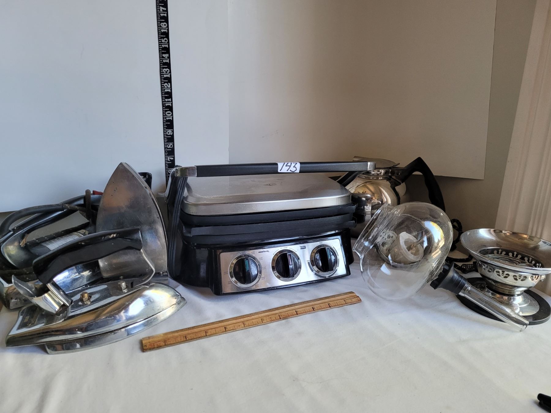 Presidents Choice Grill, working- not timer. Vintage Irons & parts for vintage Silex coffee maker.