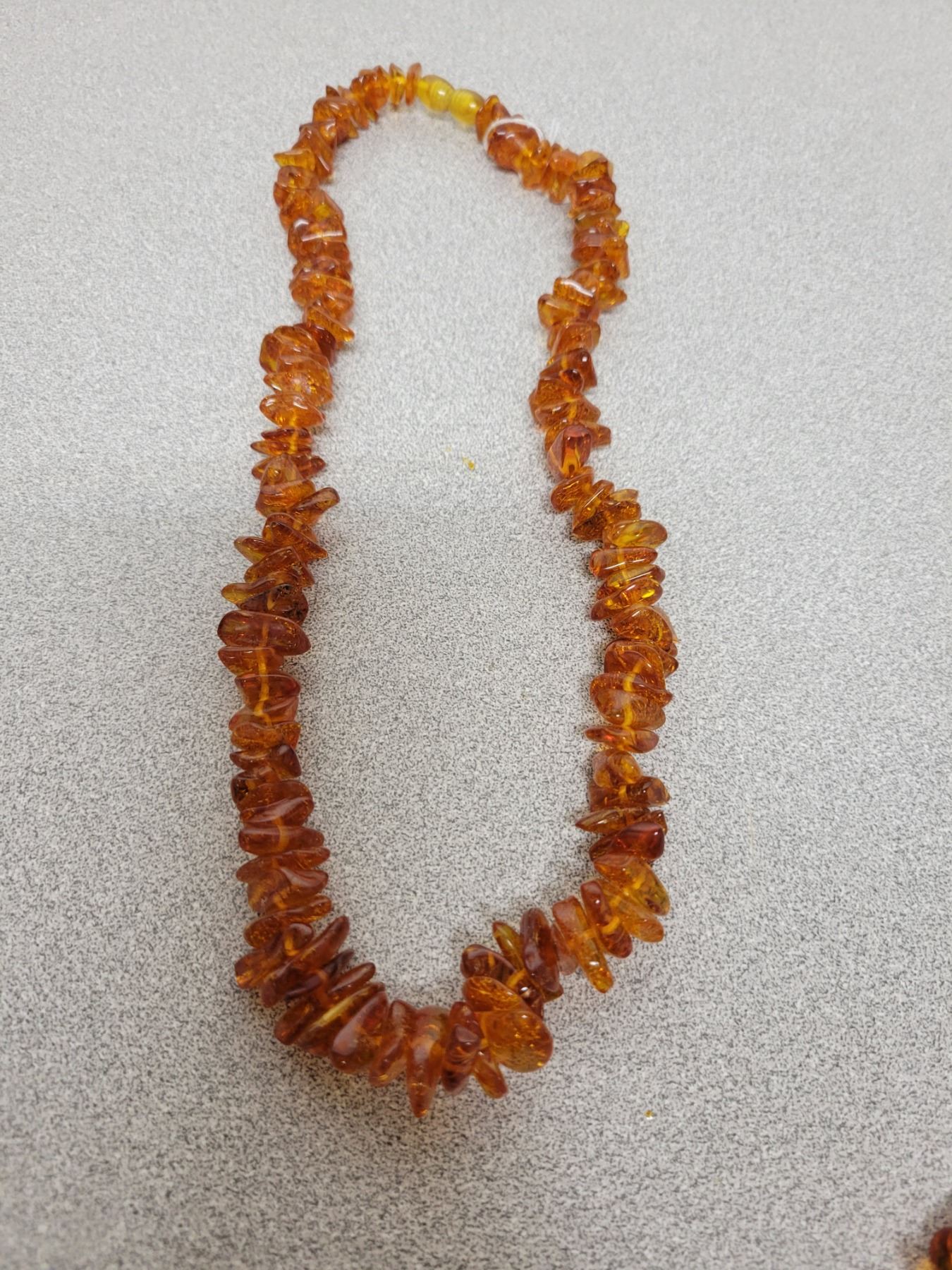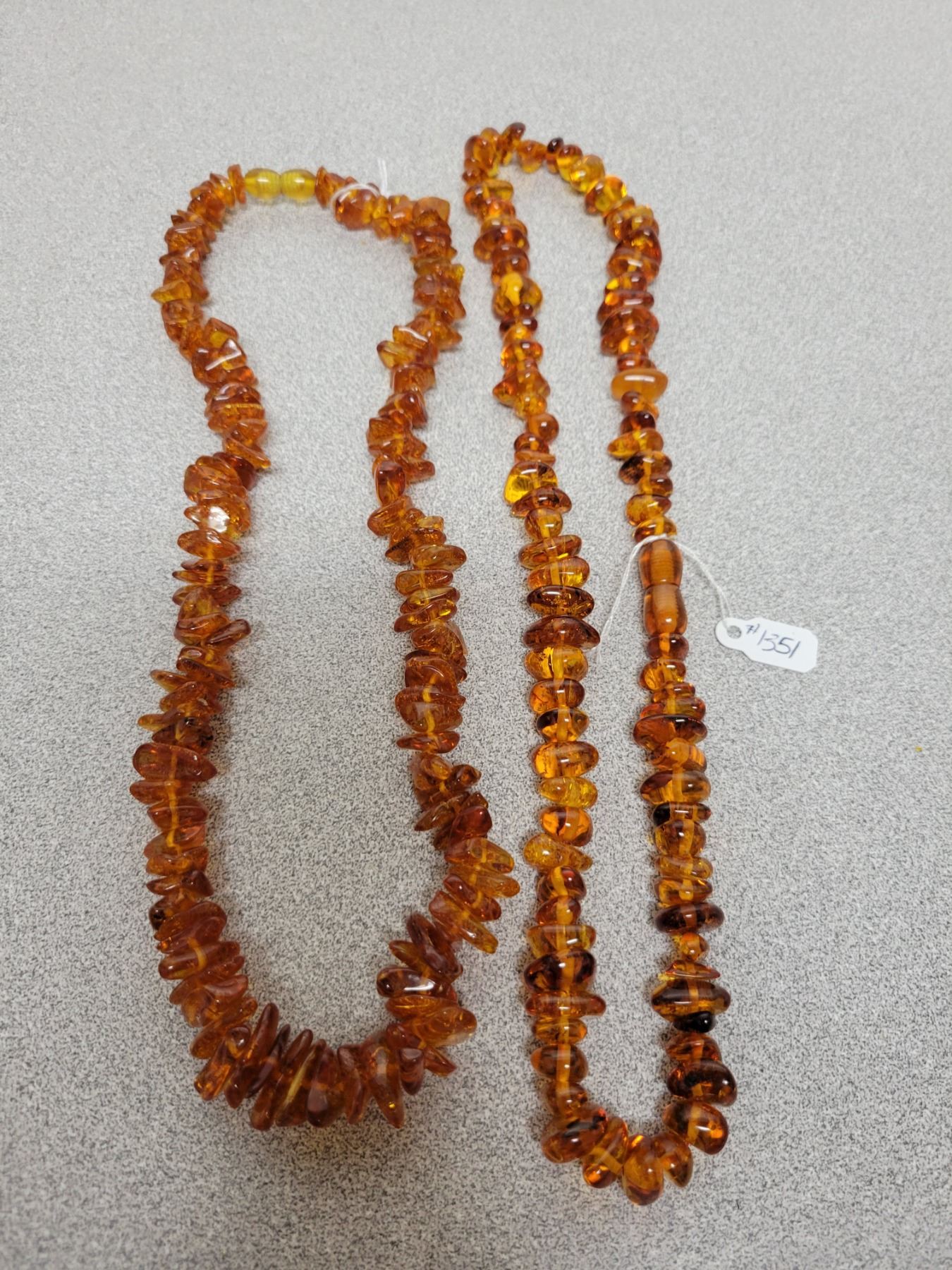 Pressed amber necklaces, 19” screw barrel fastener (2)
