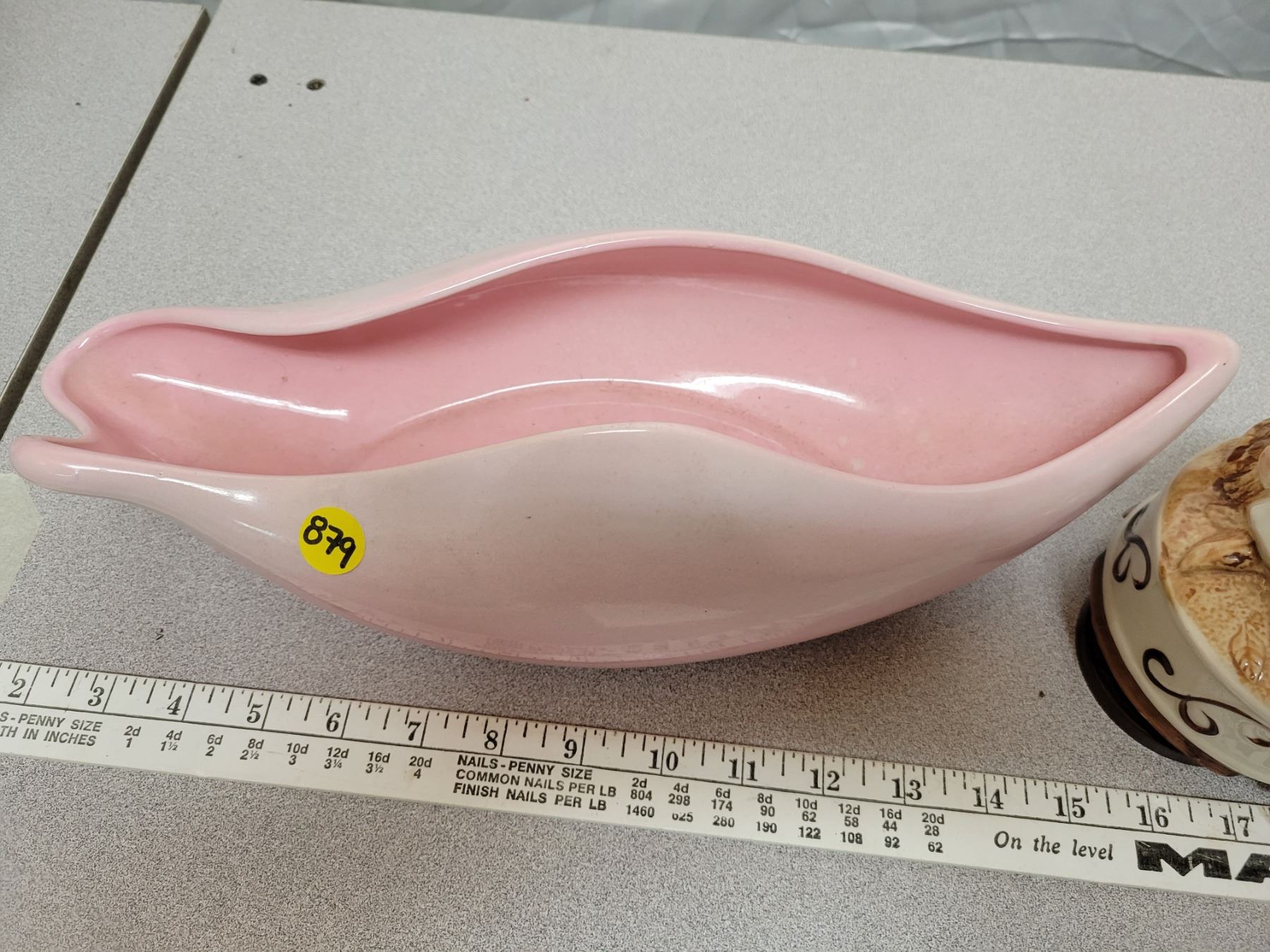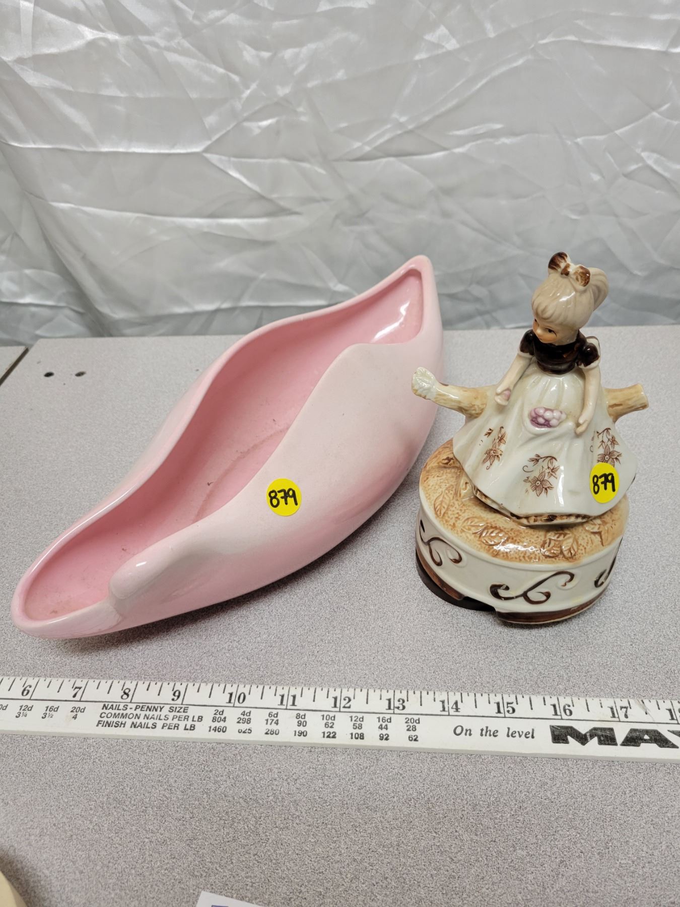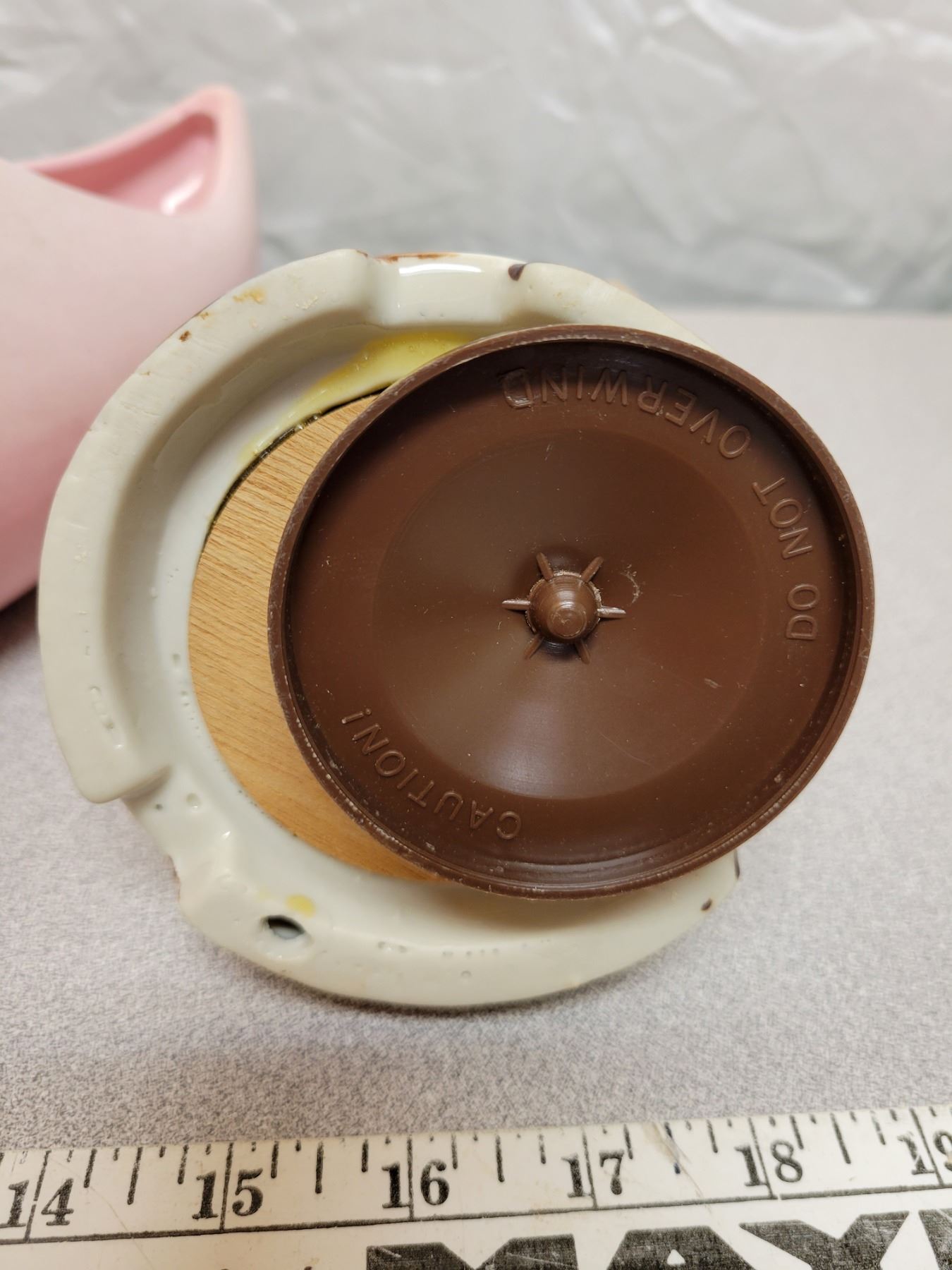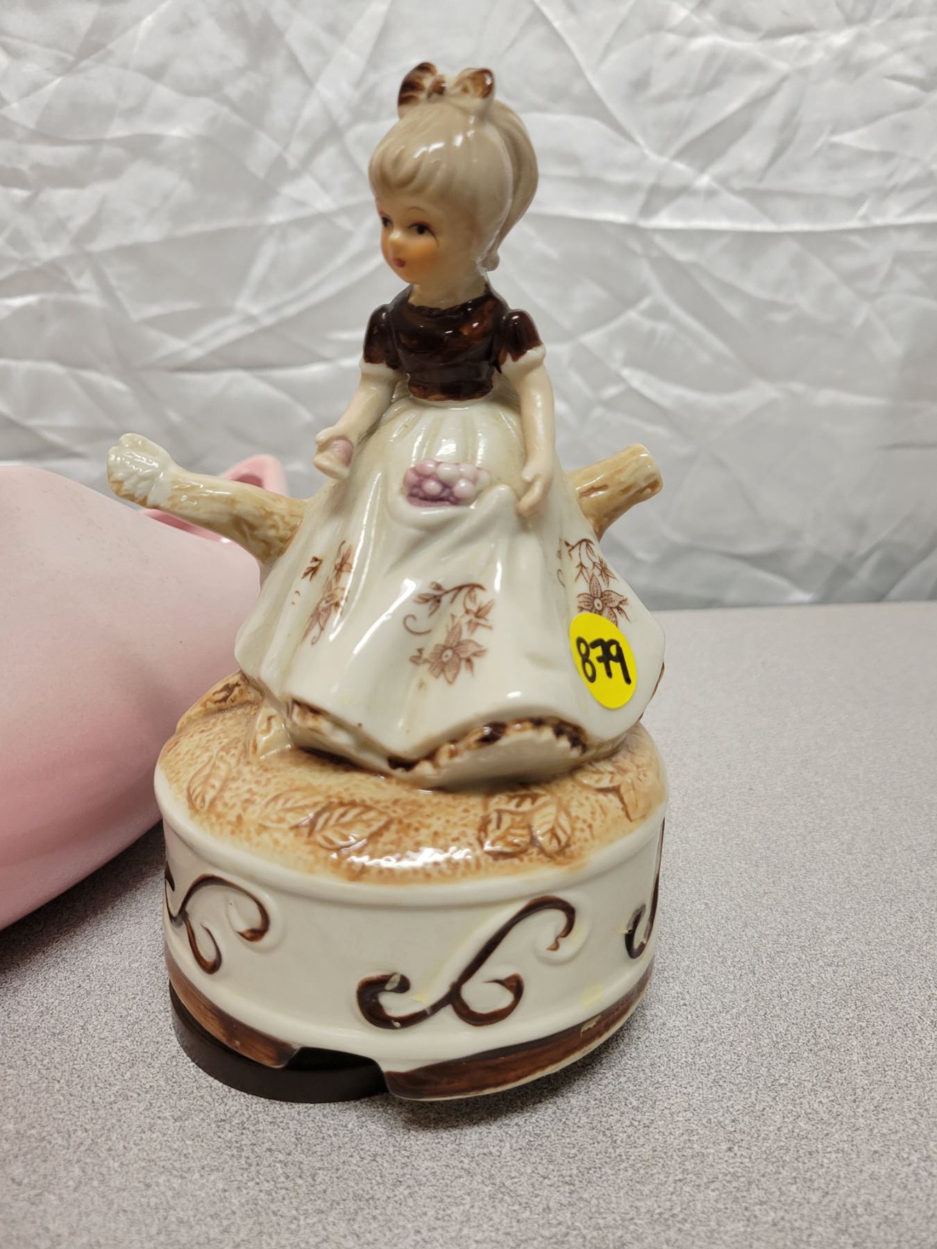 Pretty pink pottery dish and musical porcelain ornament