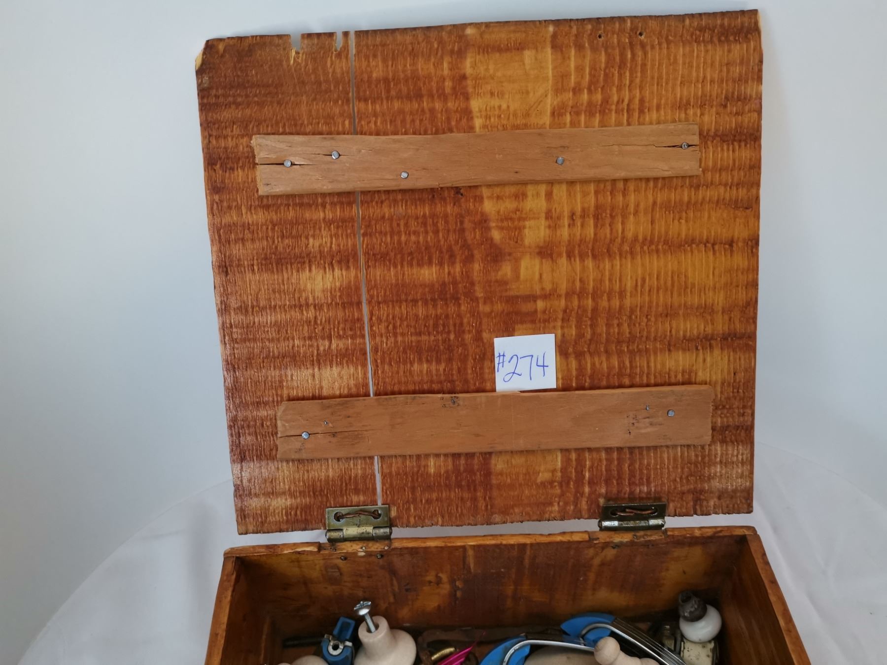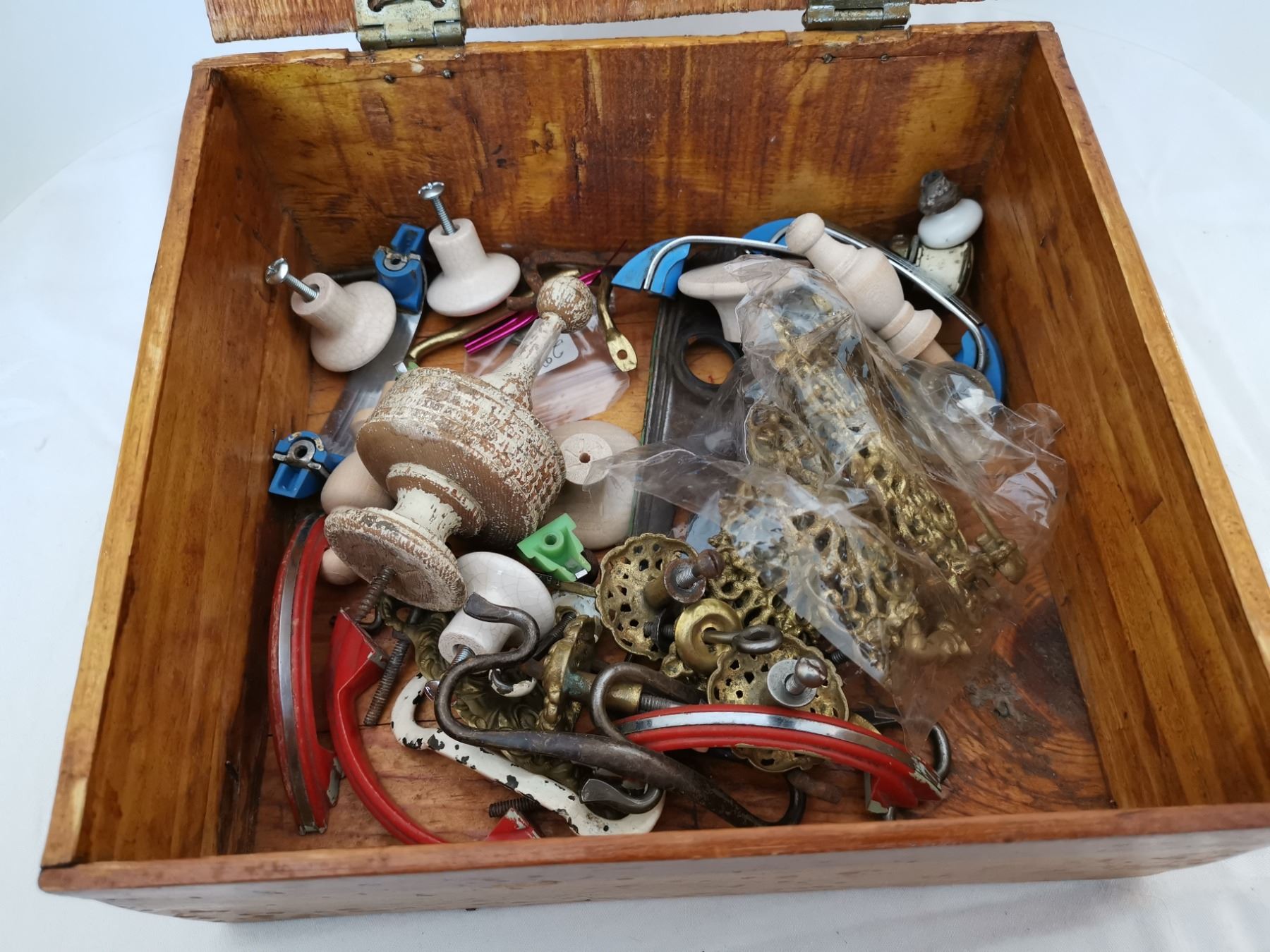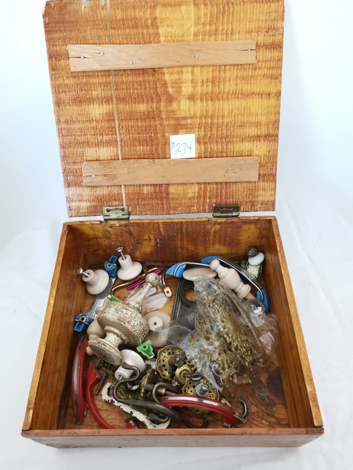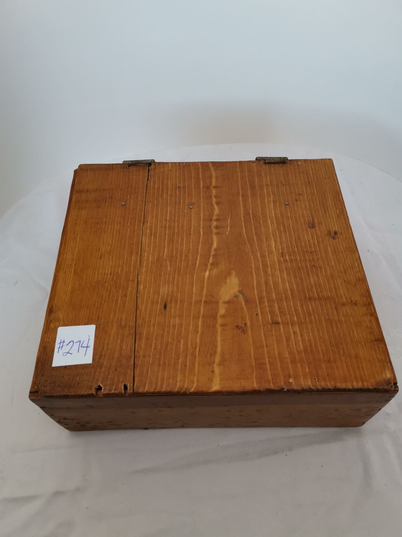 Primitive wood box with cupboard and drawer pulls