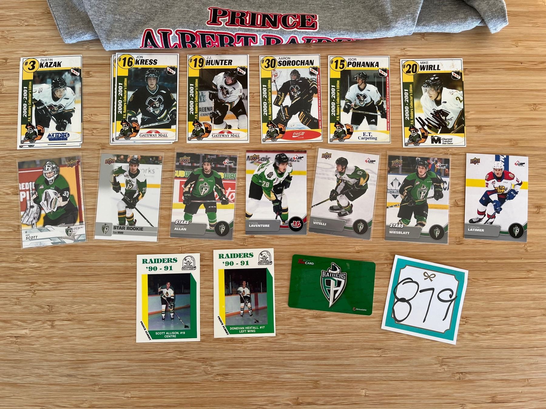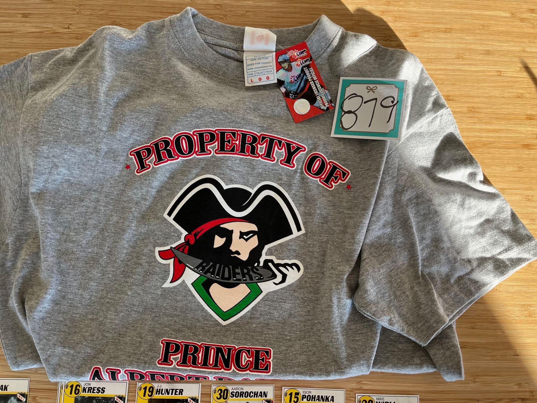 Prince Albert Raider cards from 1991 to 2022 and an unused tee shirt with early 90’s logo