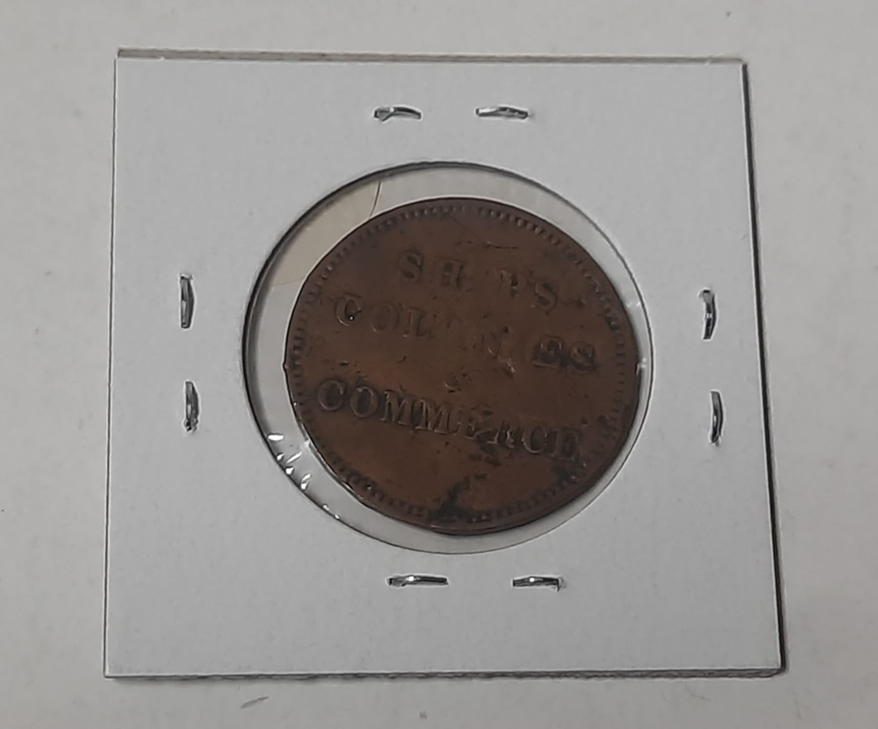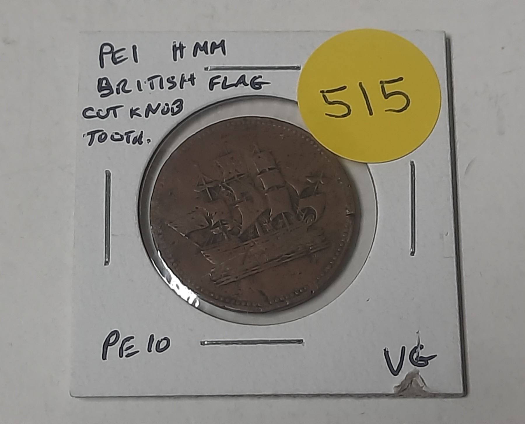 Prince Edward Island Pre-Confederation Half Penny Token. Ships Colonies & Commerce. British Flag on ship. Cut Knob Ampersand. Toothed Border. PE-10. VG8.