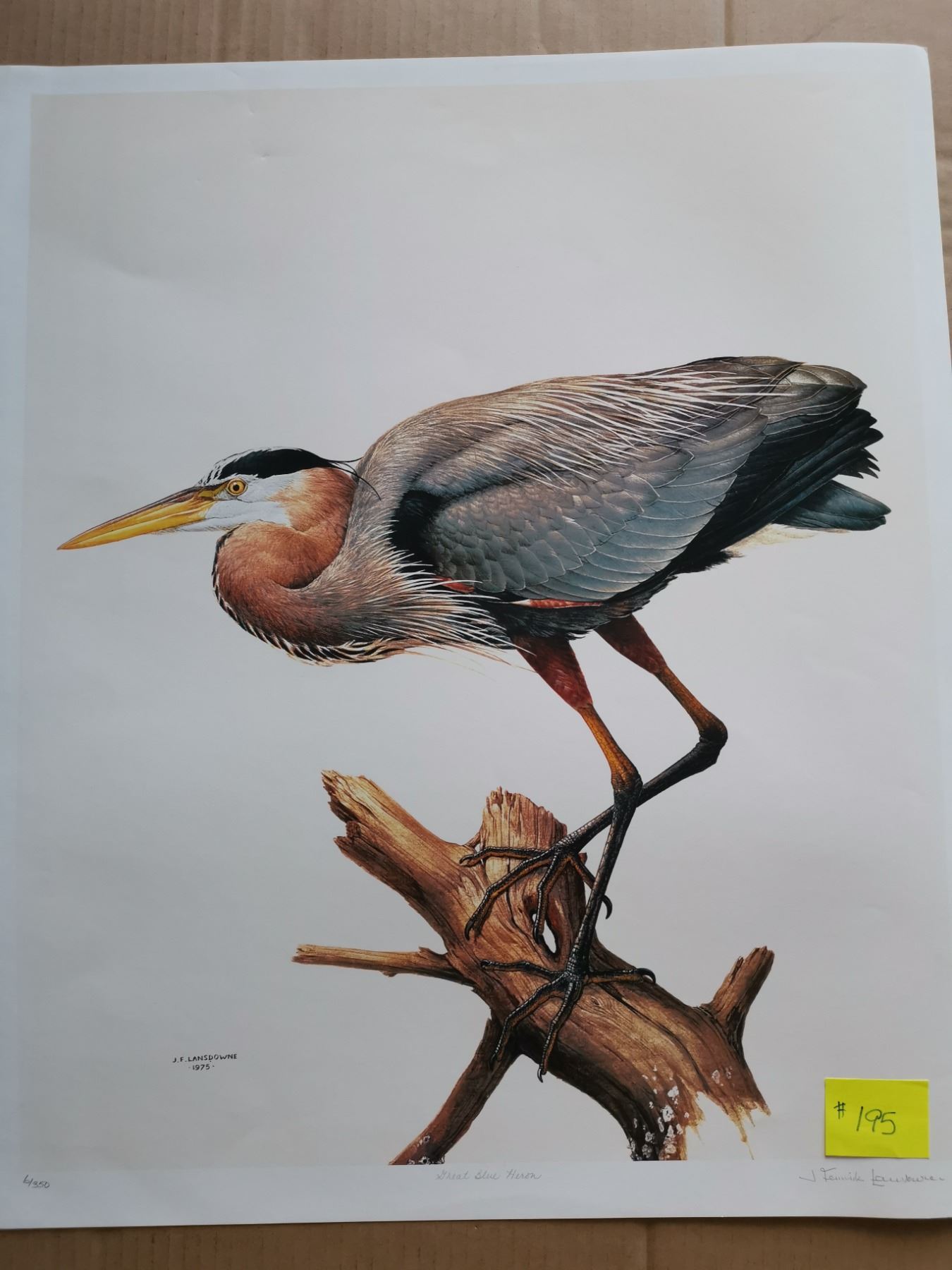 Print, Great Blue Heron, 24x20”, signed, J. Fenwick Lansdowne, 1975, limited edition 6/350