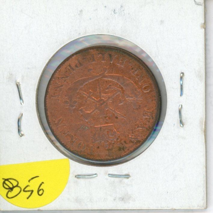 Province of Canada 1852 Half Penny Token. Bank of Upper Canada. PC-B1. Fine. Cleaned.