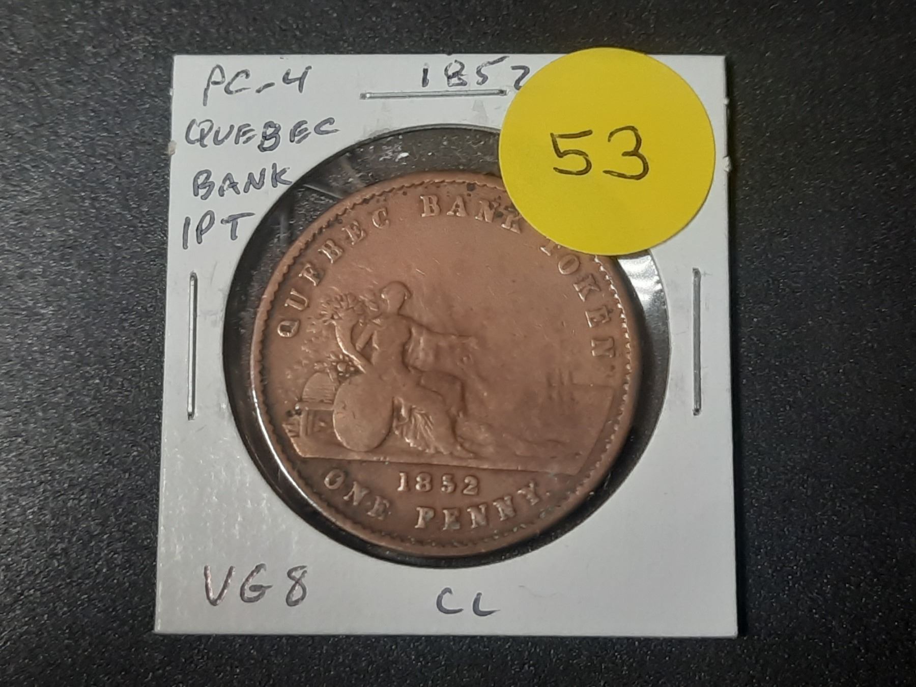 Province of Canada. 1852 Quebec Bank 1 Penny Pre-Confederation Token. PC-4. VG Cleaned.
