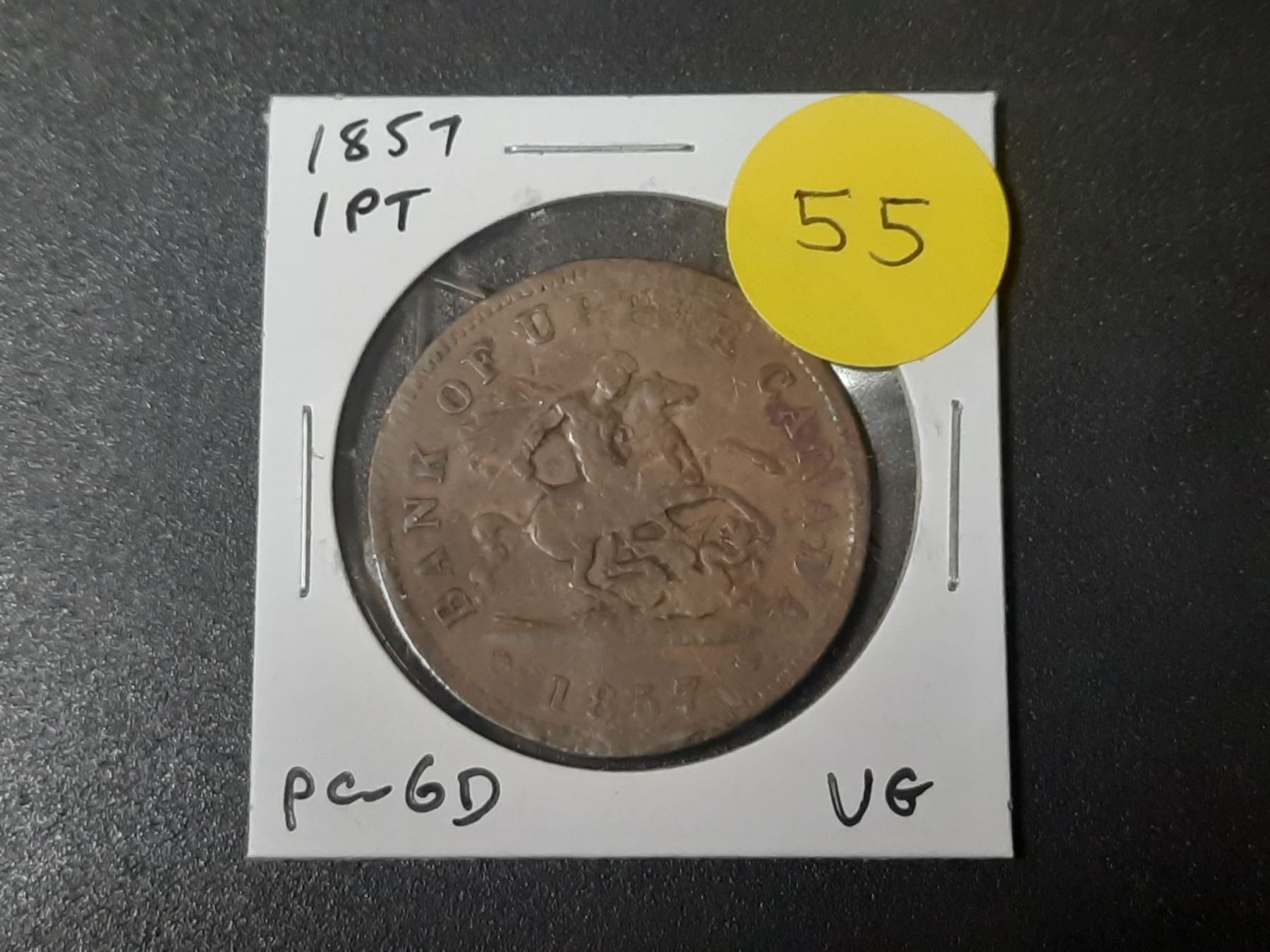 Province of Canada. 1857 1 Penny Pre-Confederation Token. St-George slaying Dragon. PC-6D. VG.