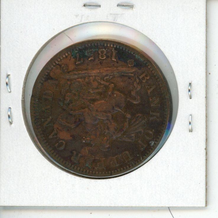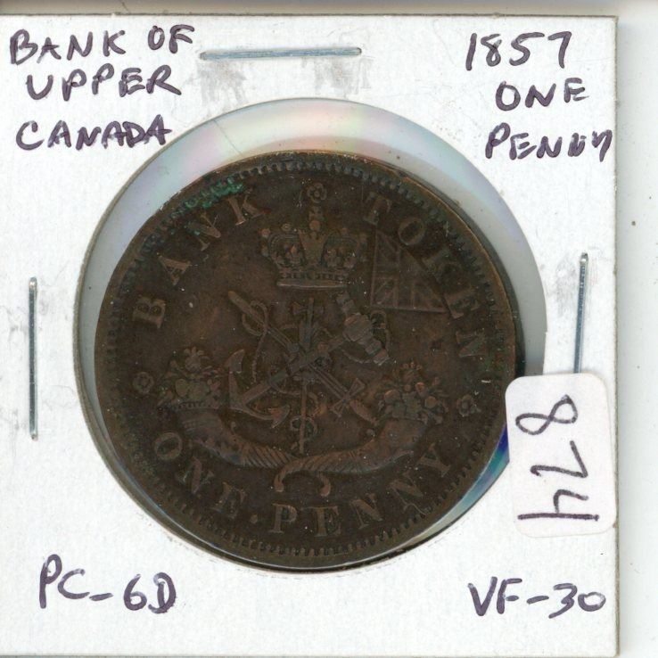 Province of Canada. 1857 Bank of Upper Canada Penny. Pre-Confederation Token. PC-6D. VF-30.