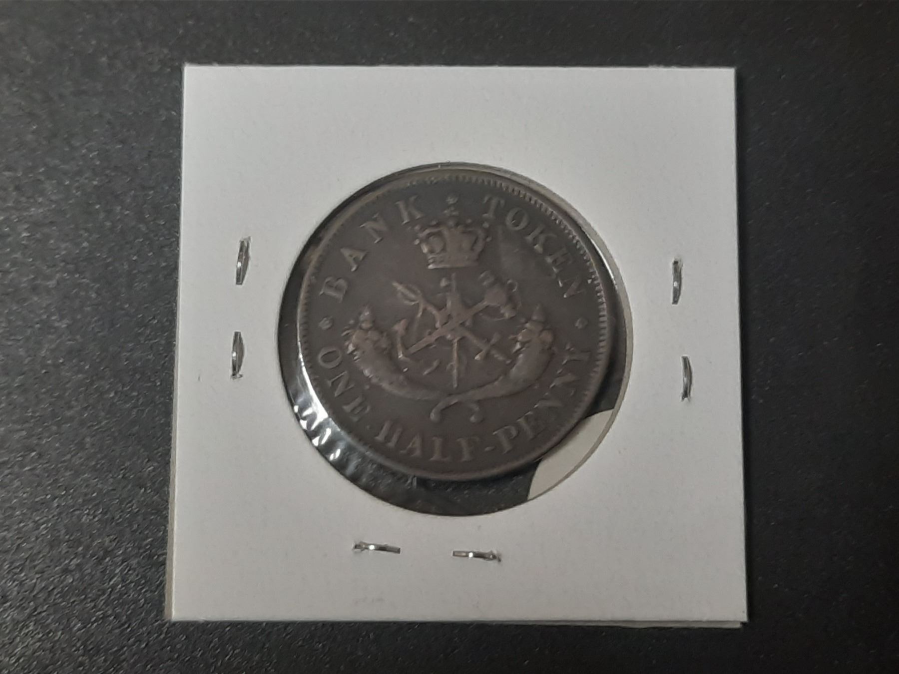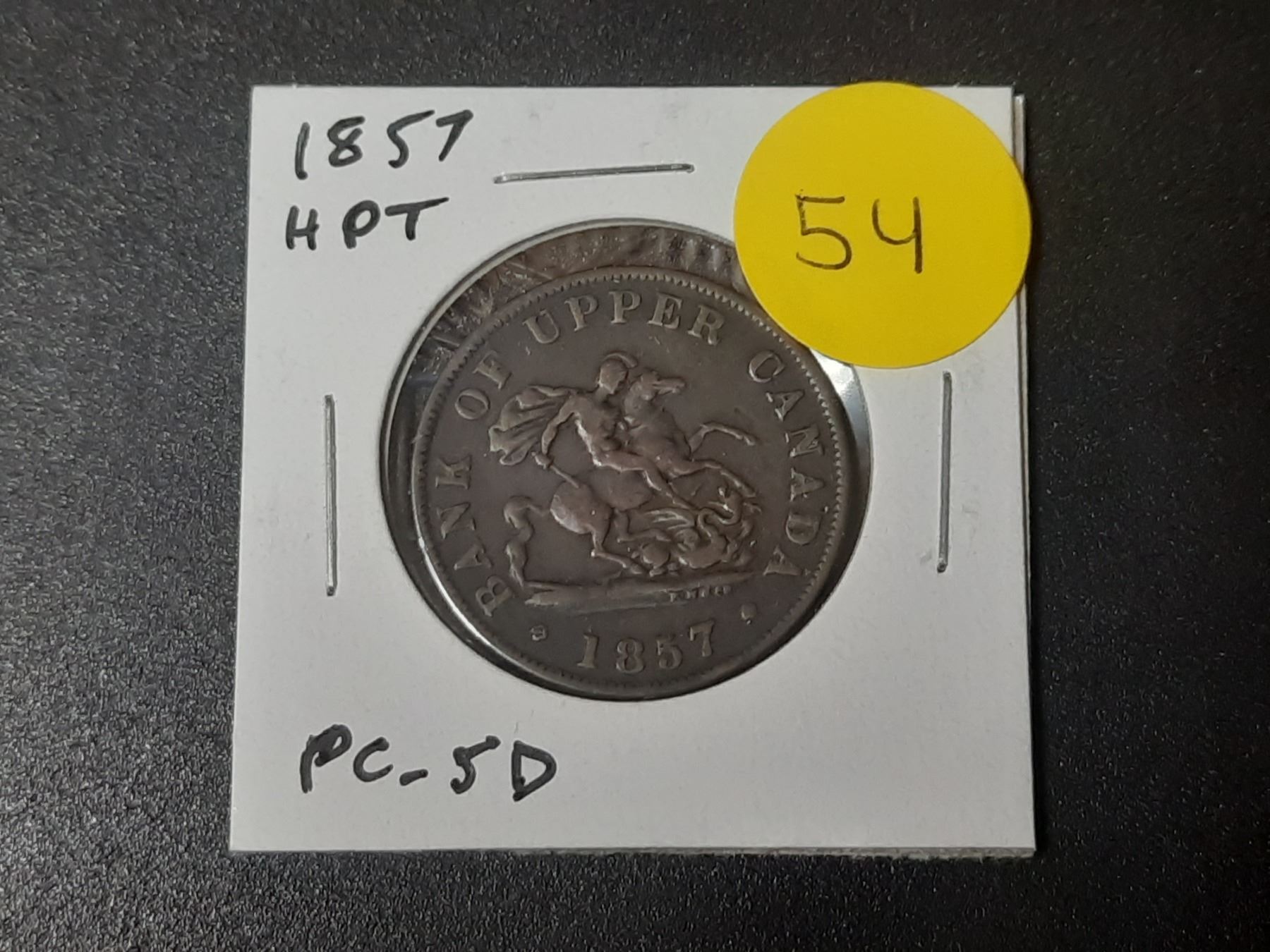 Province of Canada. 1857 Half Penny Pre-Confederation Token. St-George slaying Dragon. PC-5D. VF.