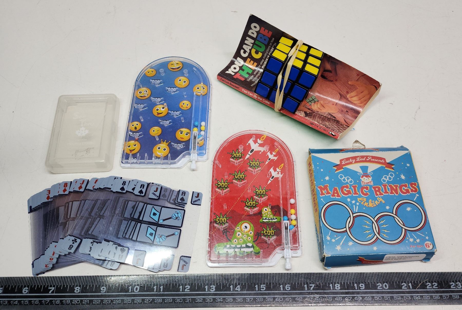 Puzzle games - Rubix cube, hand held pinball, deck of cards, etc.