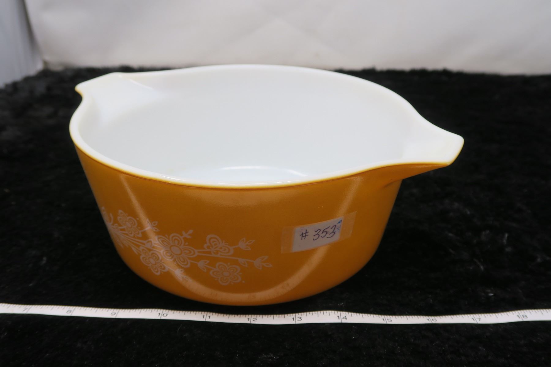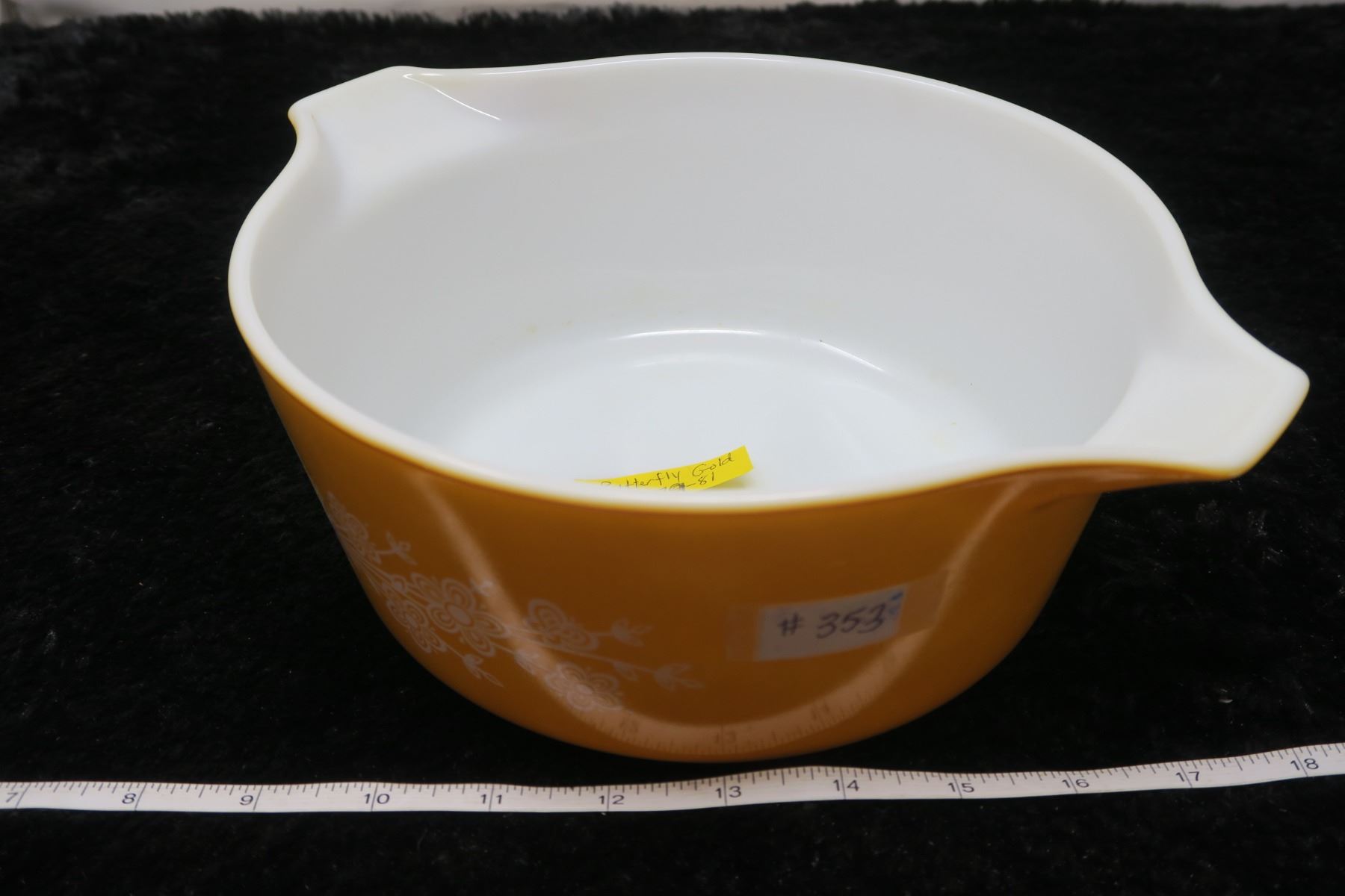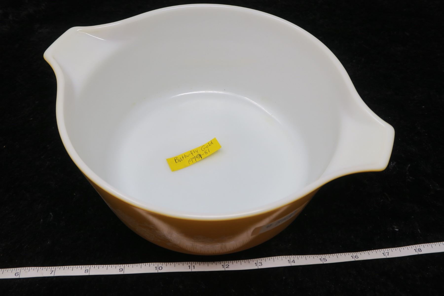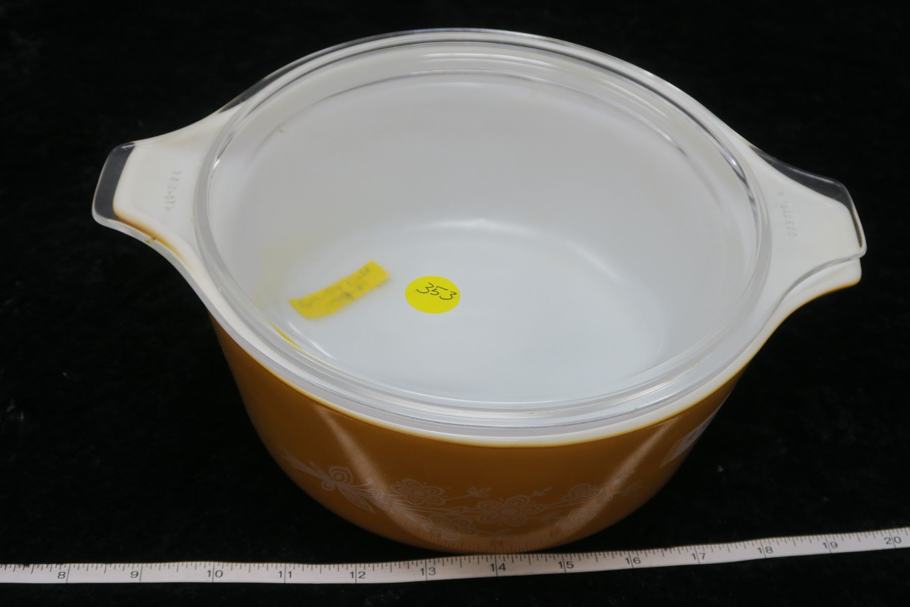 Pyrex 2.5 litre Casserole/lid, Butterfly gold pattern, 1979-81
