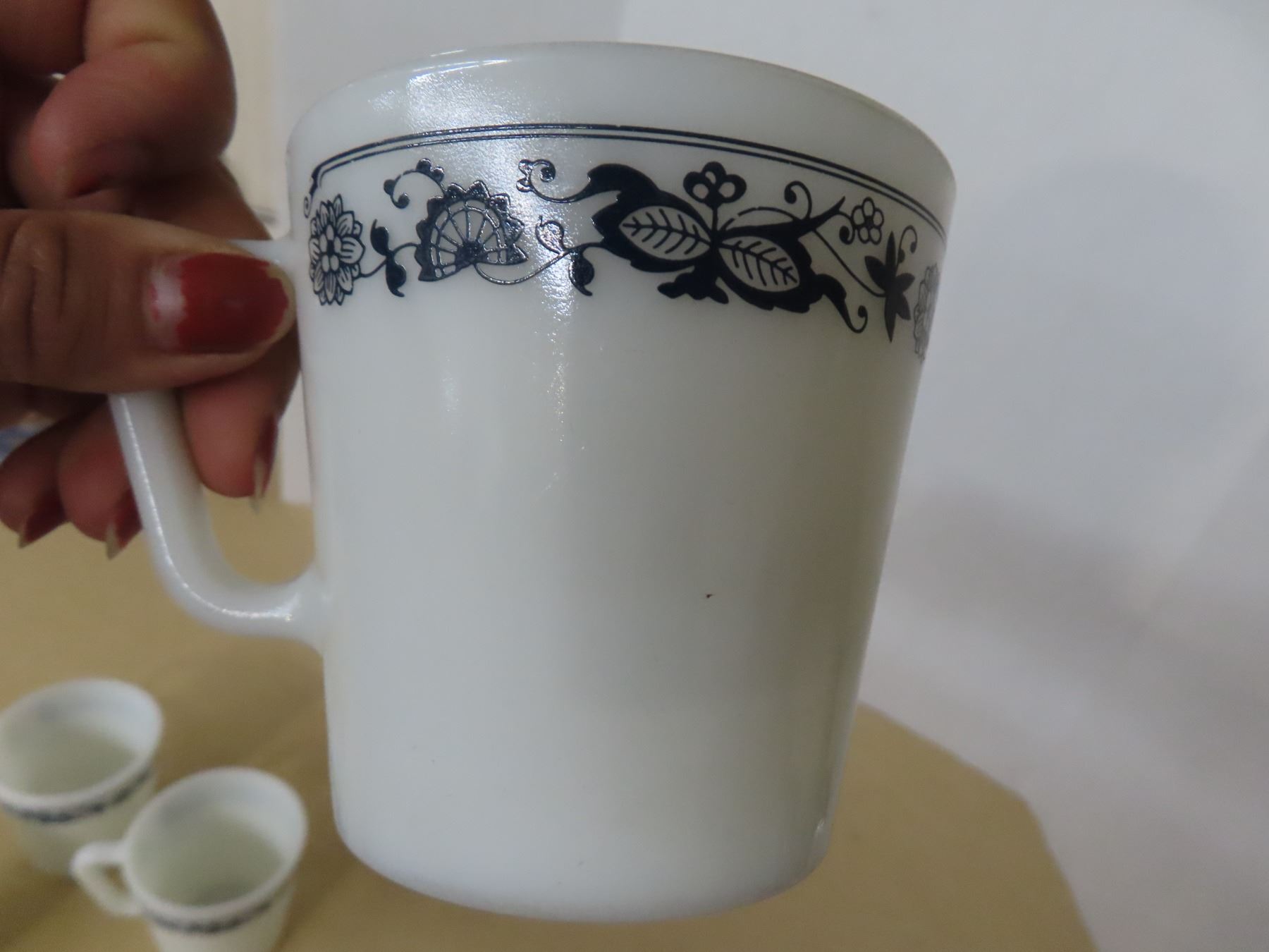 Pyrex coffee mugs, old town blue(4), 1972-78