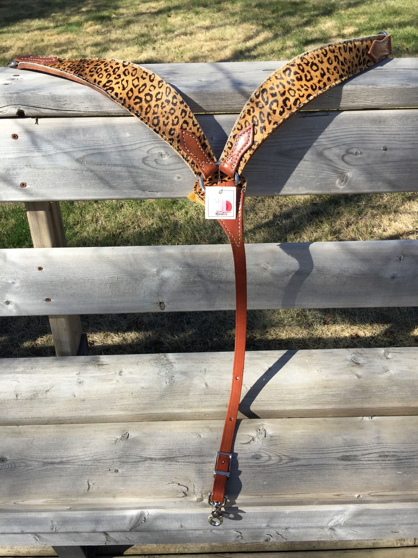 QUALITY TAN LEATHER/LEOPARD PRINT HAIR ON HIDE/BREAST COLLAR/3" WIDE