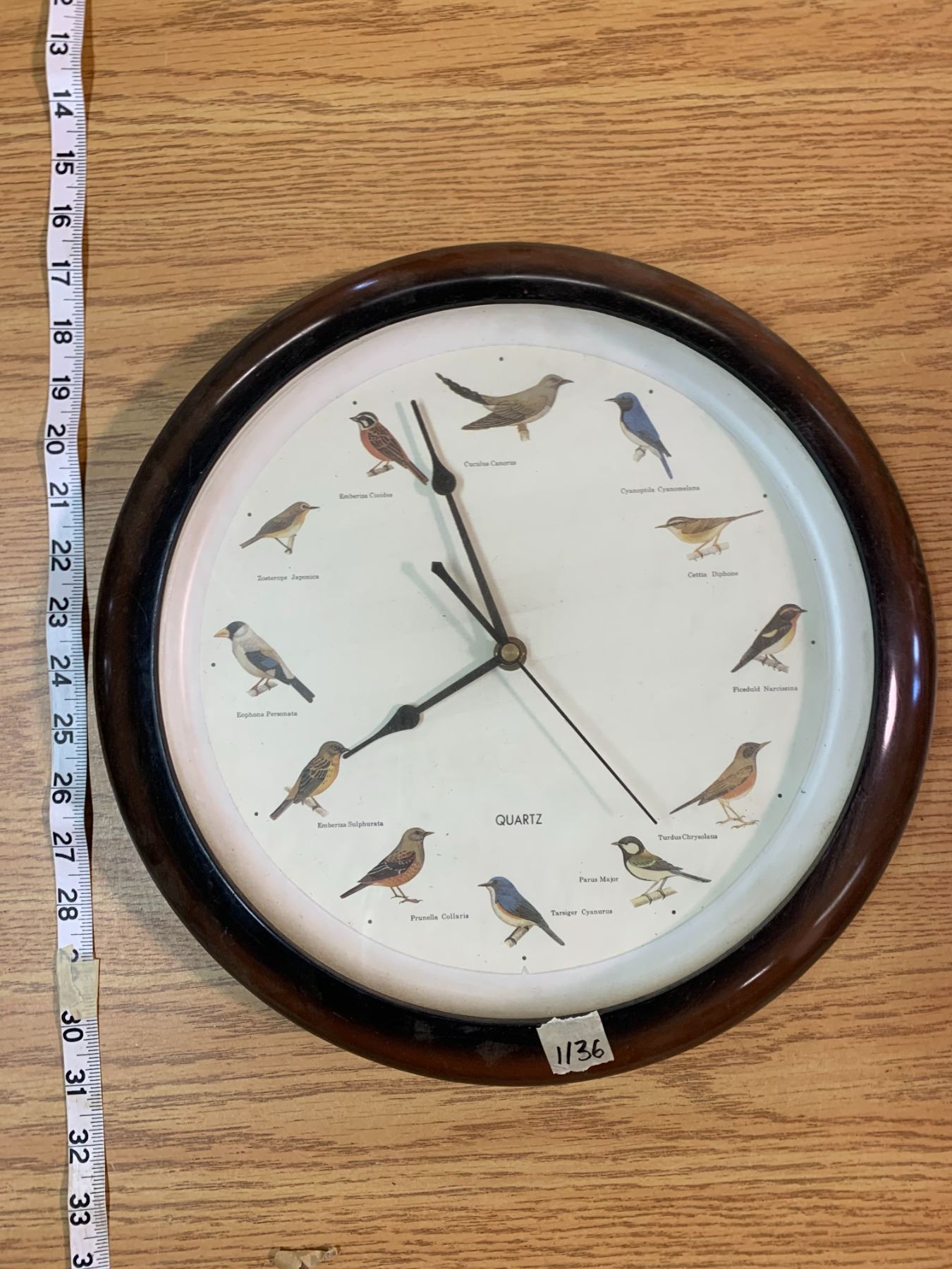 QUARTZ SONG BIRD WALL CLOCK - MADE IN CHINA - BATTERY POWERED
