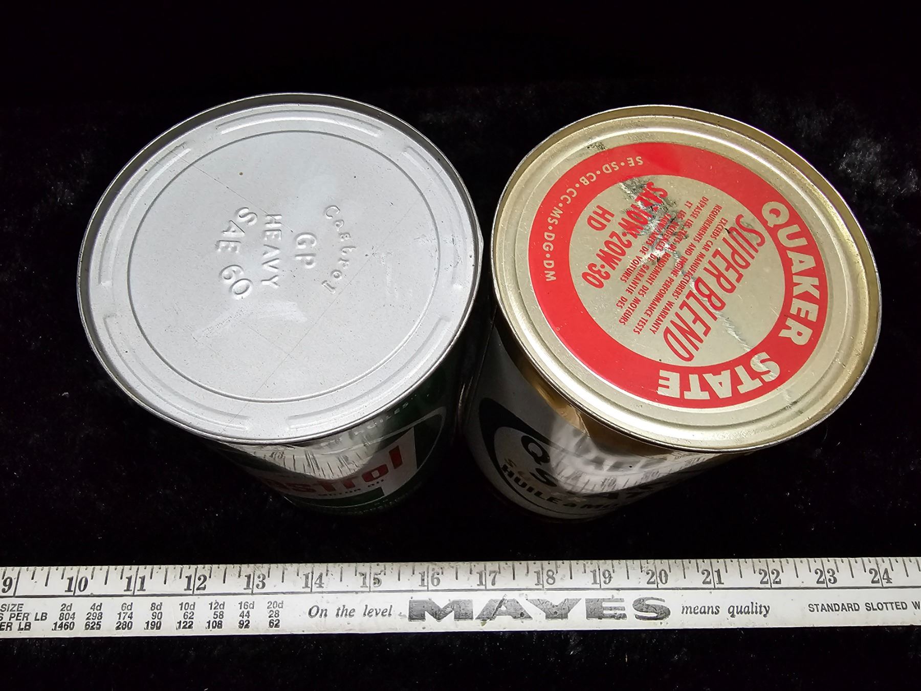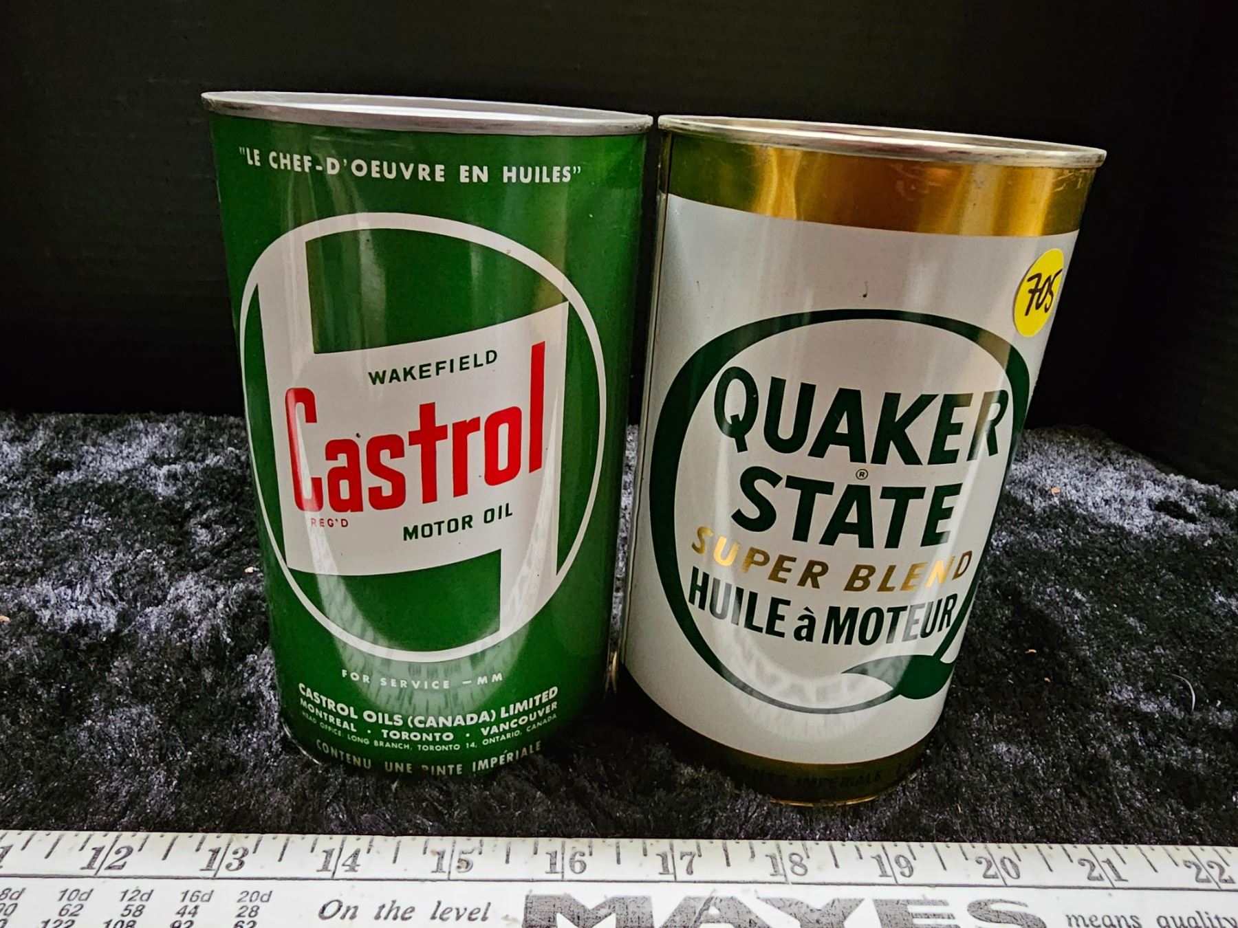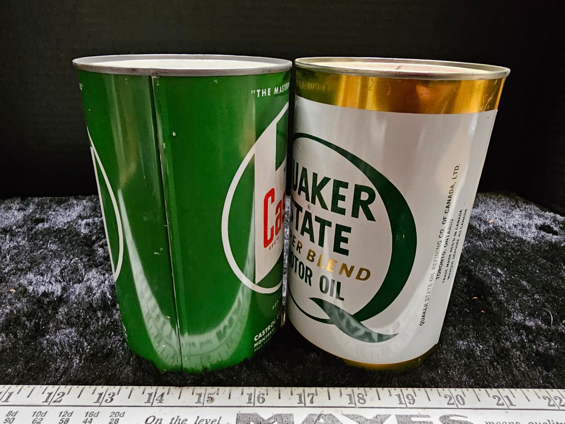 Quaker State motor oil, Castrol motor oil tins - full