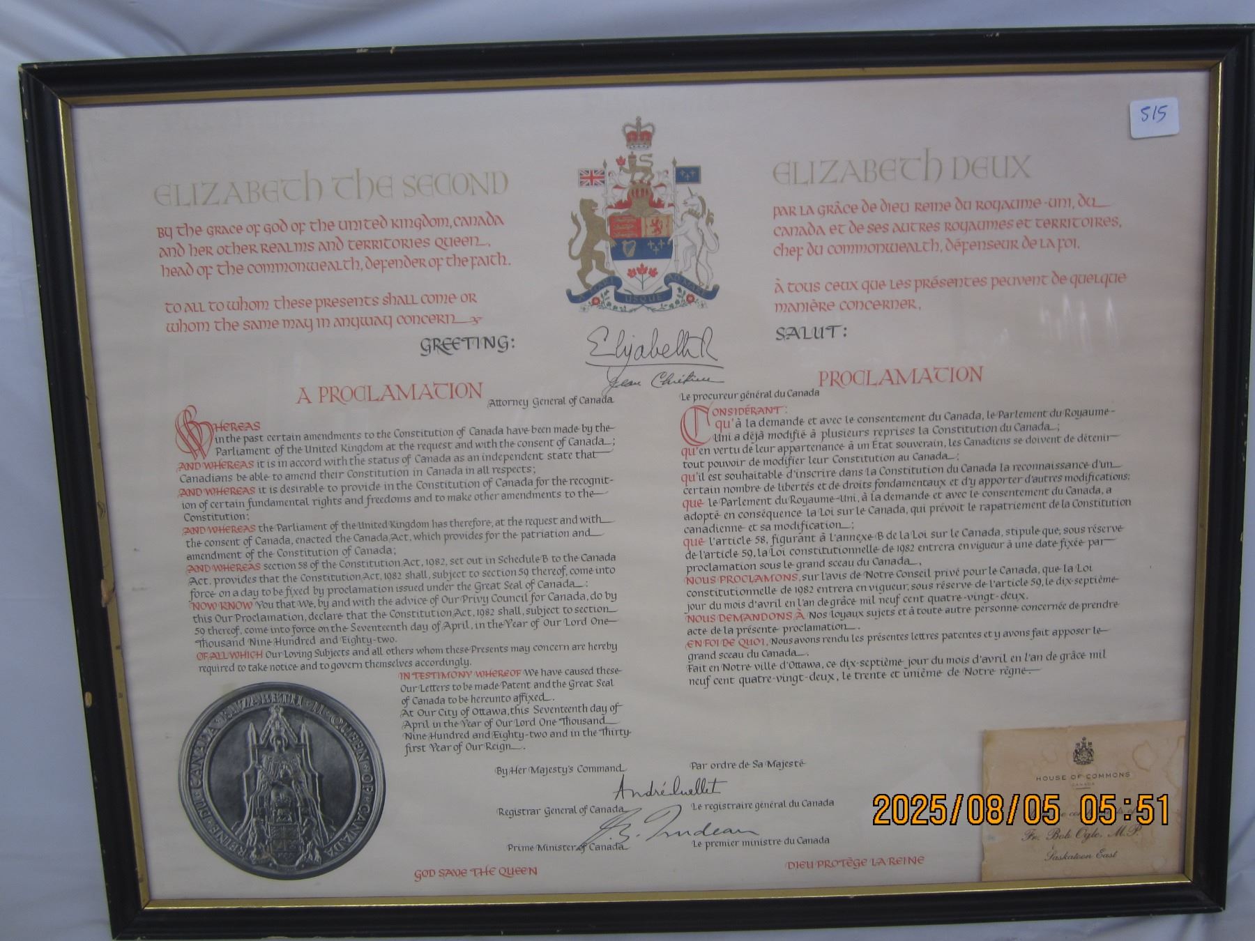Queen Elizabeth 2 Proclamation Framed 25 inches by 19 inches
