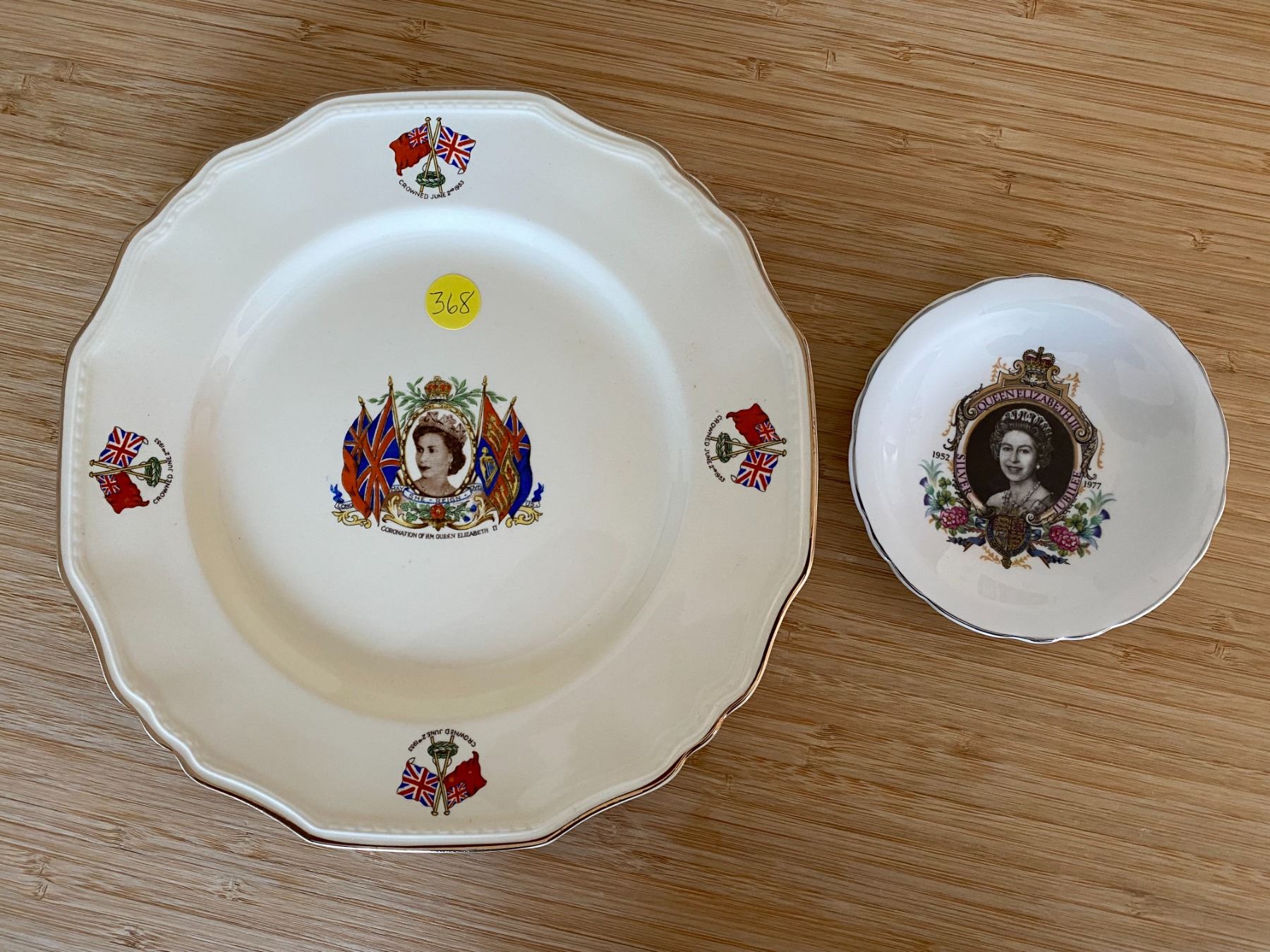 Queen Elizabeth Coronation large plate and 1977 candy dish
