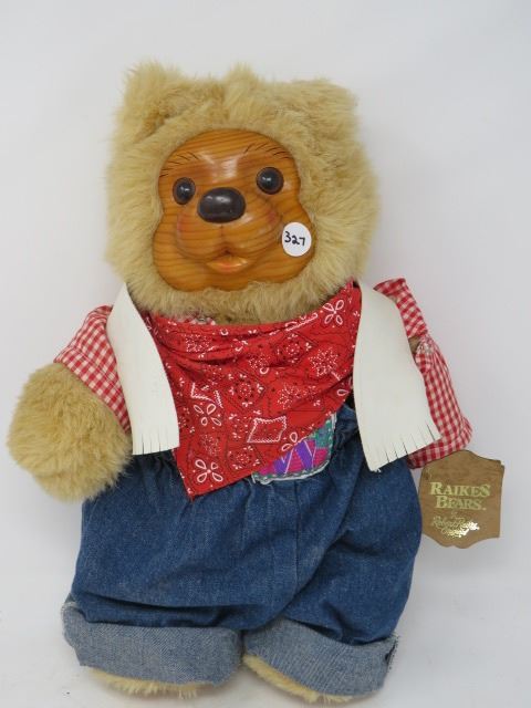 RAIKES BEAR, HAND CARVED WOODEN FACE, FEET, NUMBERED, SIGNED, RARE