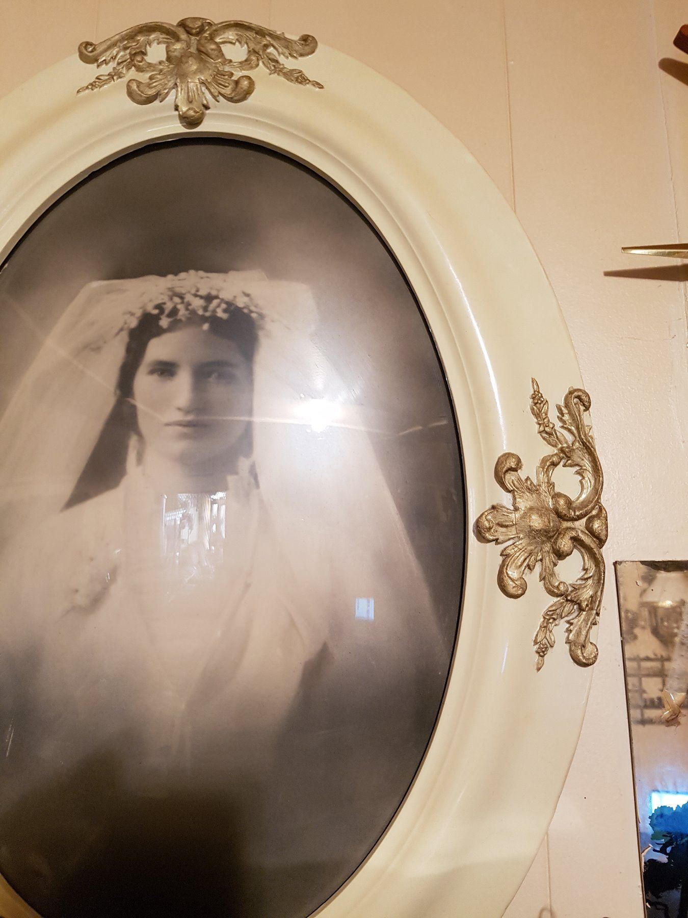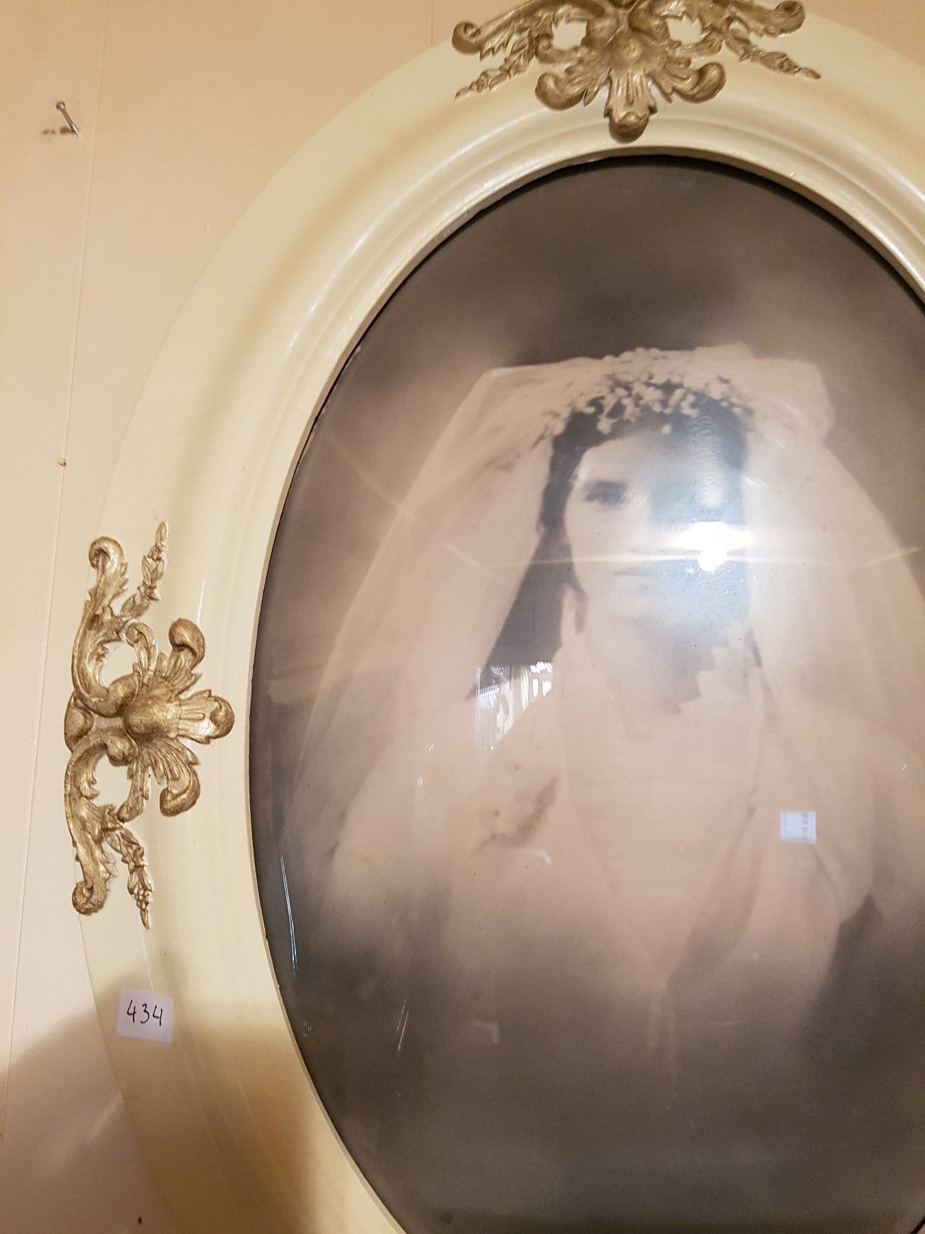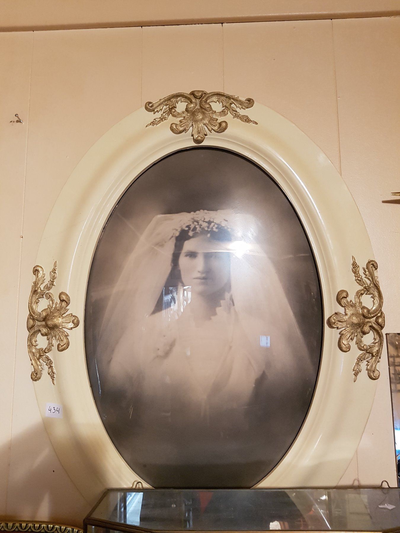 RARE white frame bubble glass picture frame