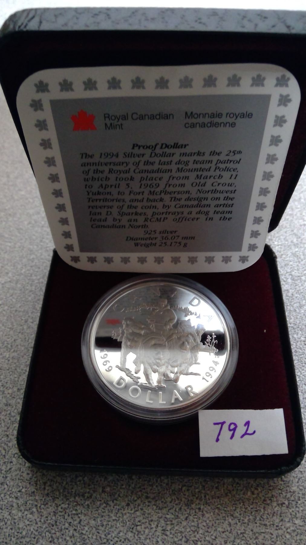 RCM 1991 Proof Silver Sterling Dollar 9.25 RCMP/Last Dog Team/Old Pro 1969