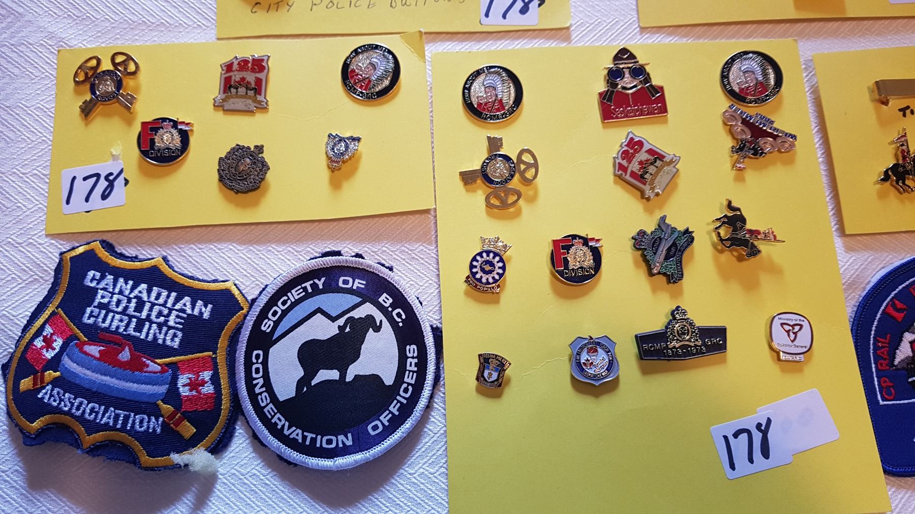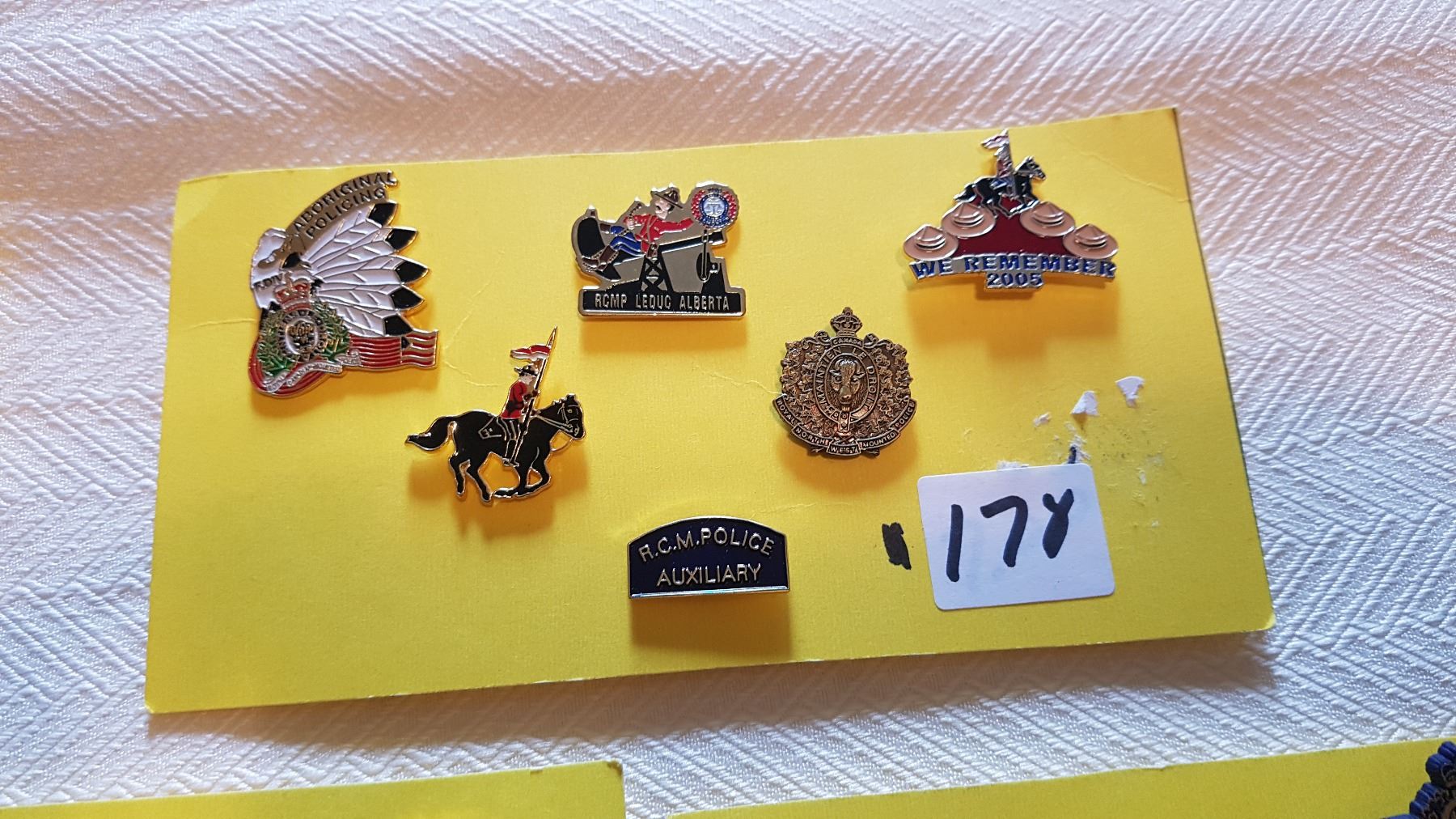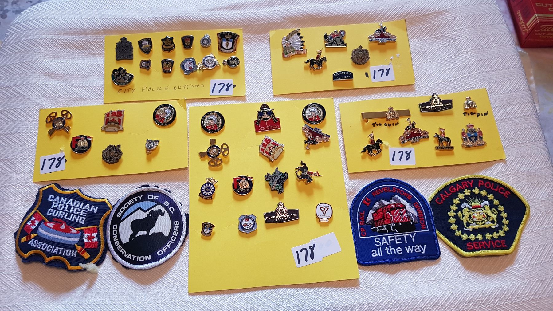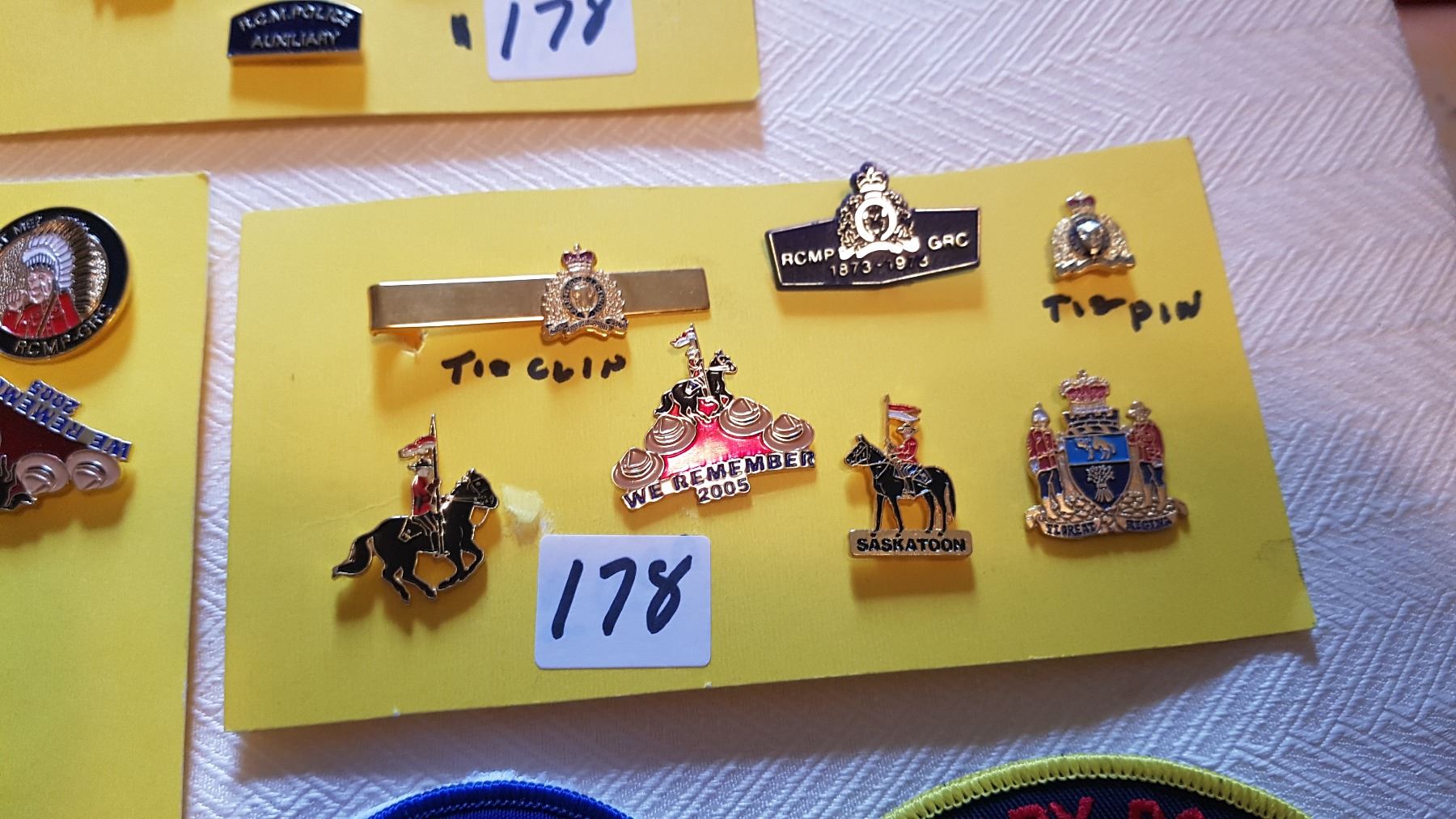 RCMP AND POLICE SERVICE PINS, LOT OF 44, 4 PATCHES