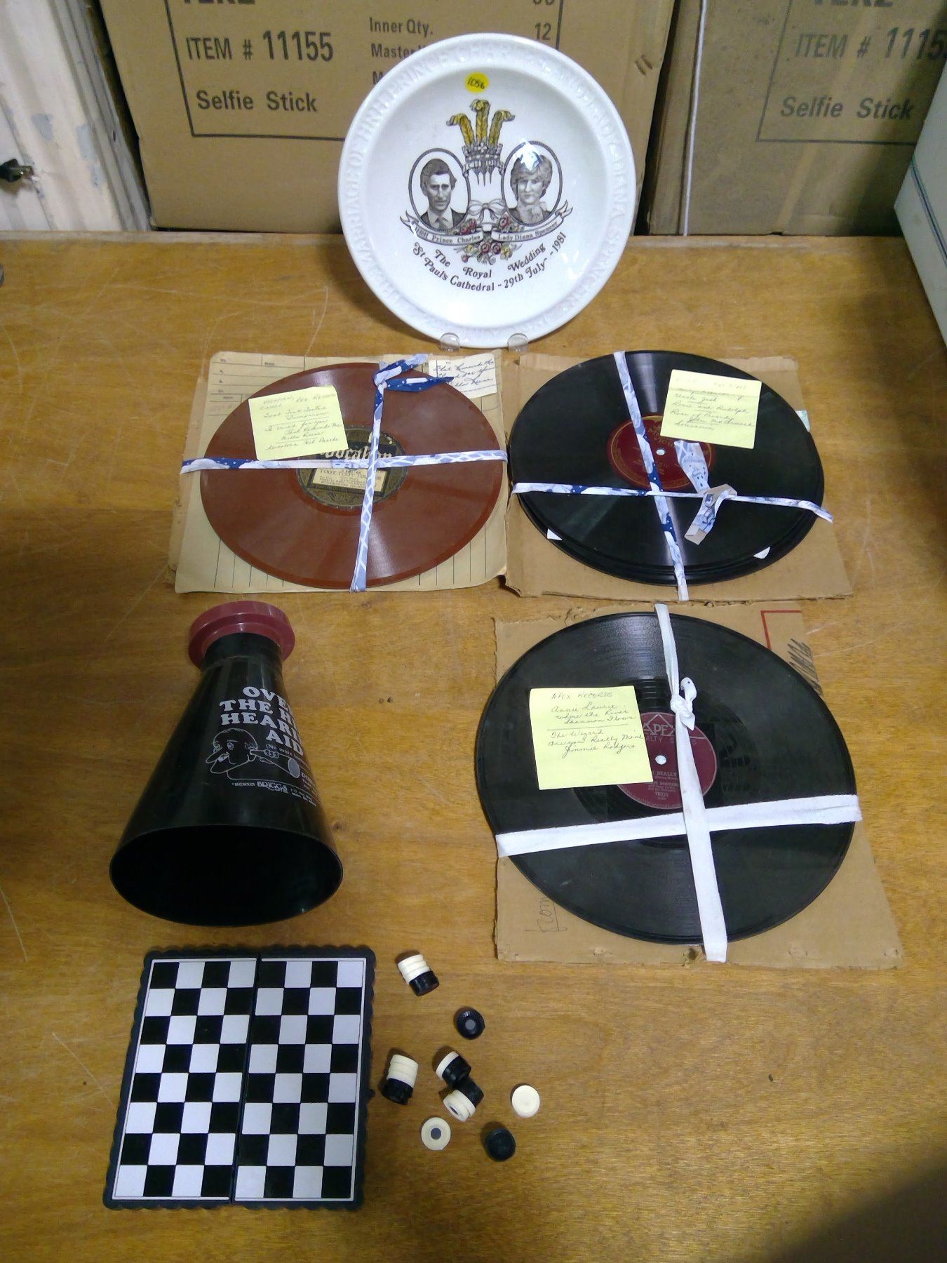 RECORDS + MINI CHECKERBOARD + HEARING TRUMPET