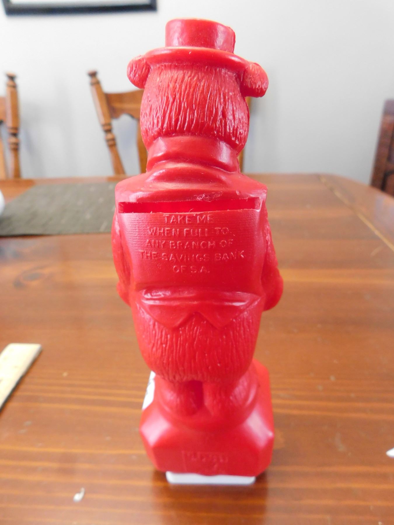 RED BEAR STATE BANK PLASTIC COIN BANK