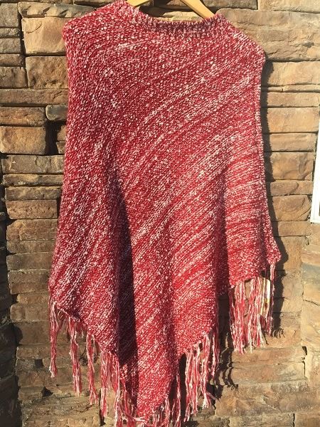 RED/WHIT KNIT PONCHO/FRINGE BOTTOM