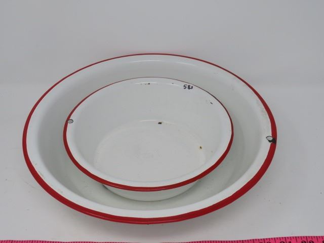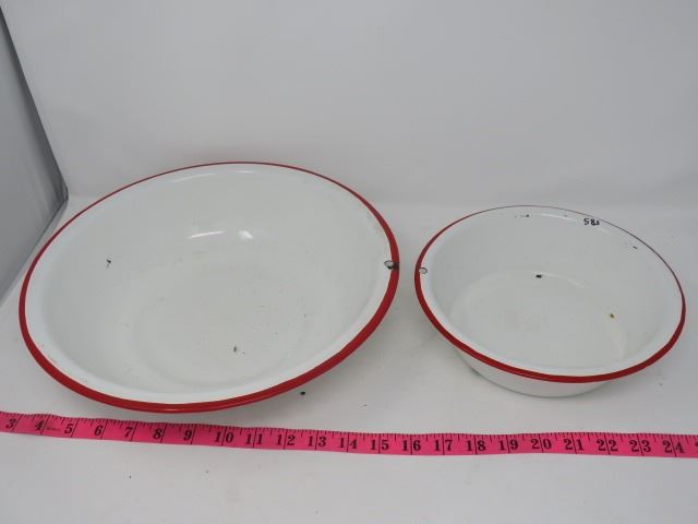 RED/WHITE ENAMEL WASH BASIN, SMALLER WASH BASIN, VINTAGE