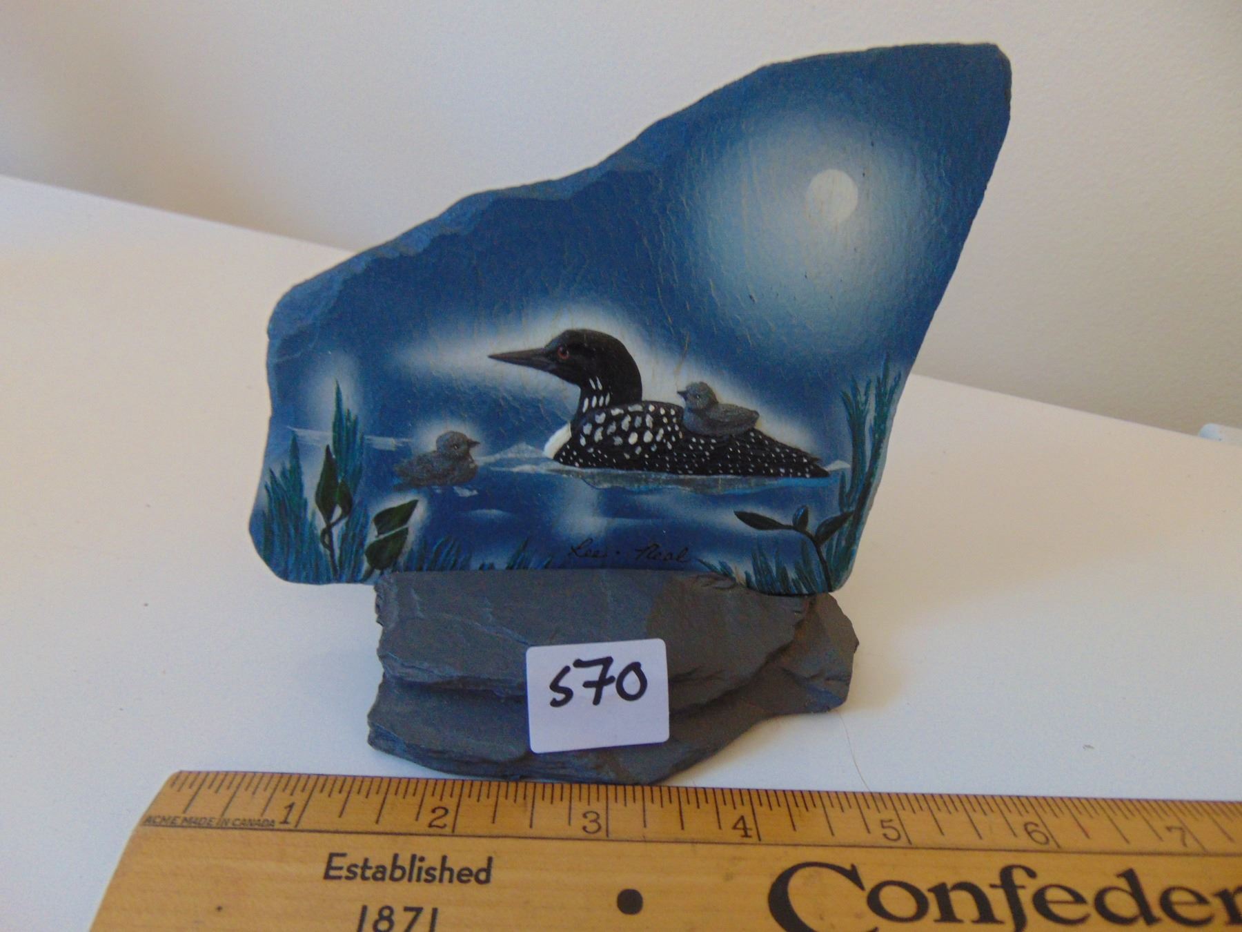 REFLECTIONS OF BAY ART PAINTED LOON ON ROCK