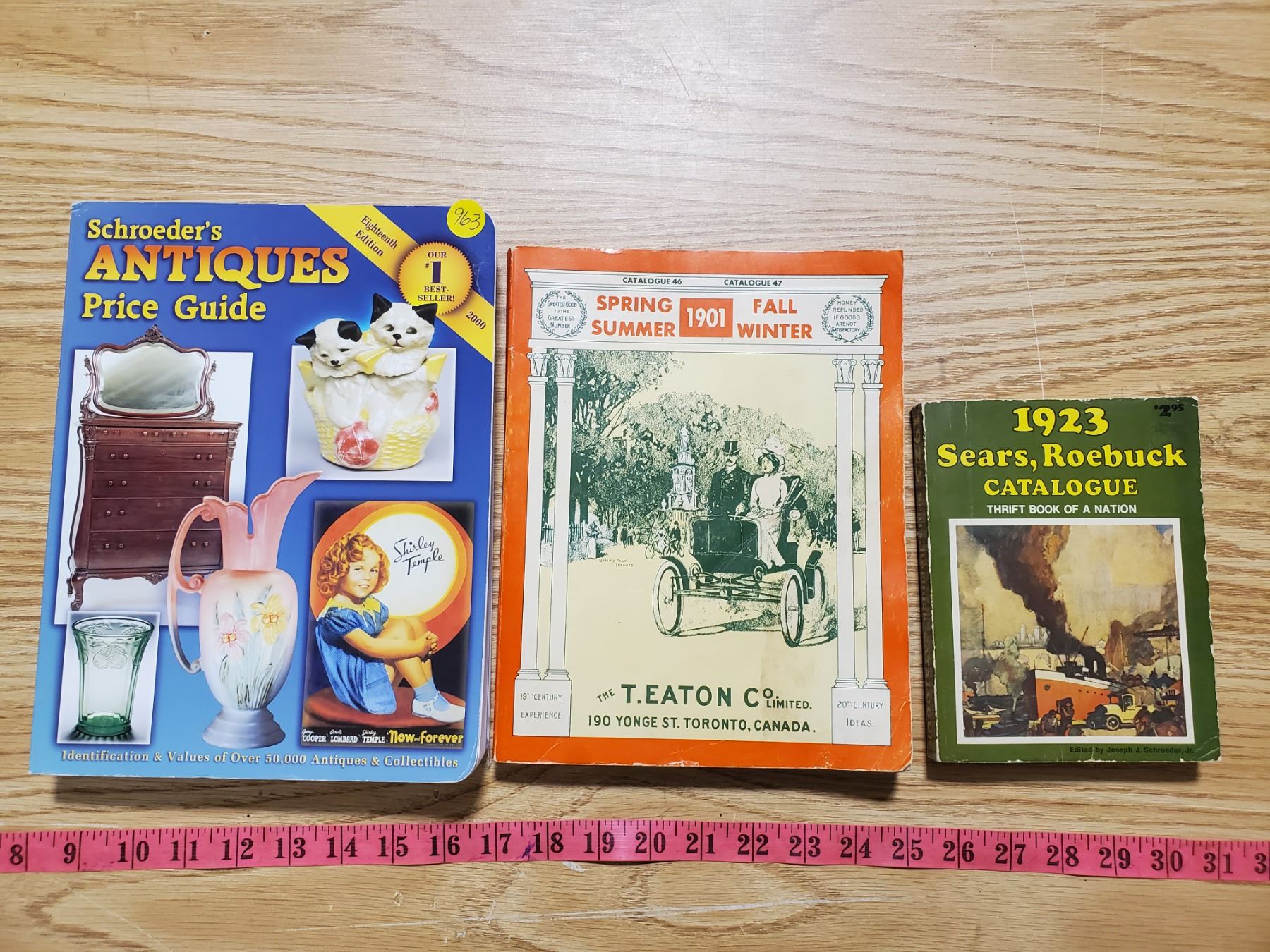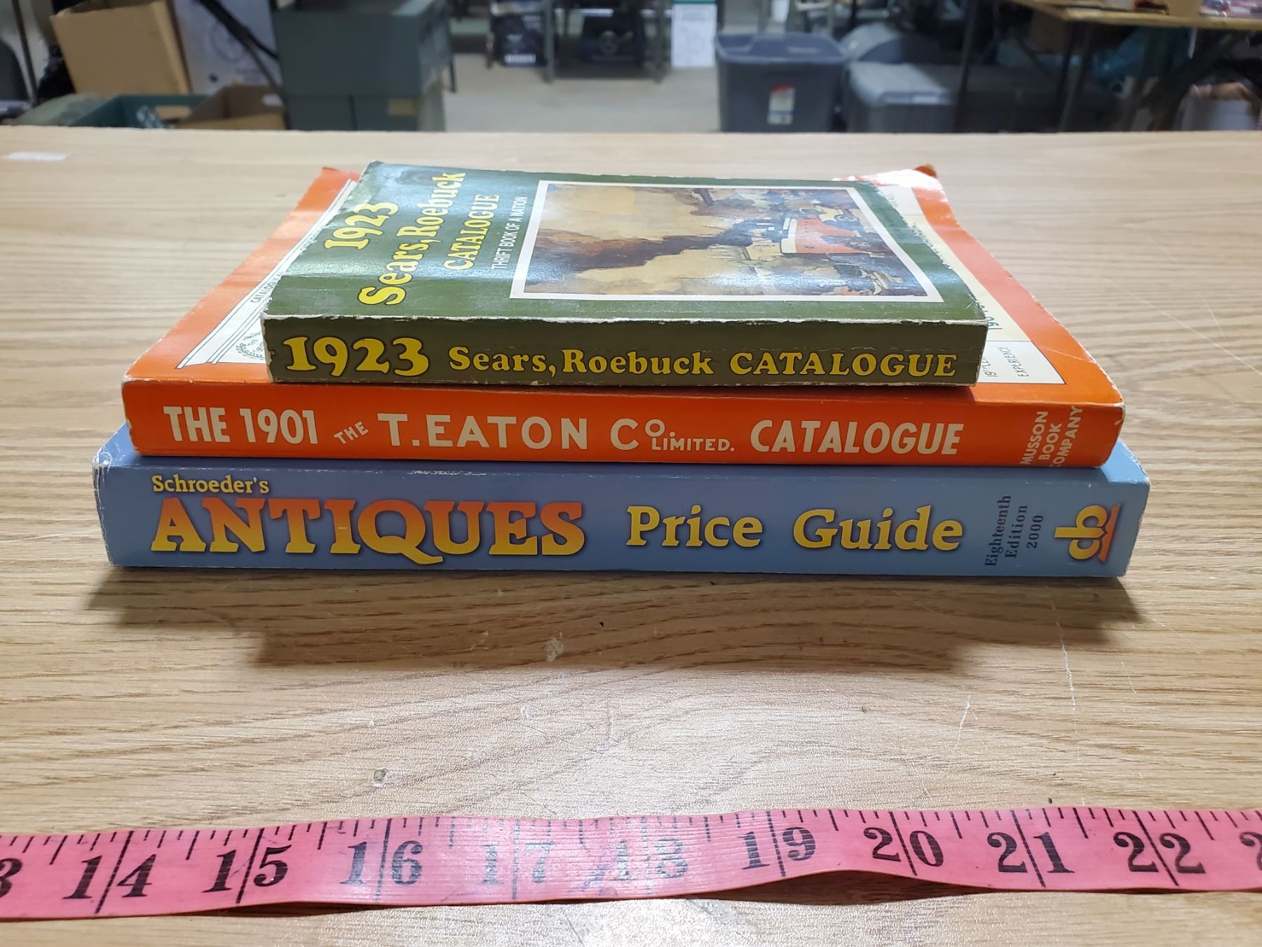 REPRODUCTION CATALOUGES-1901 EATONS, 1923 SEARS ROEBUCK, SCHROEDERS ANTIQUE PRICE GUIDE