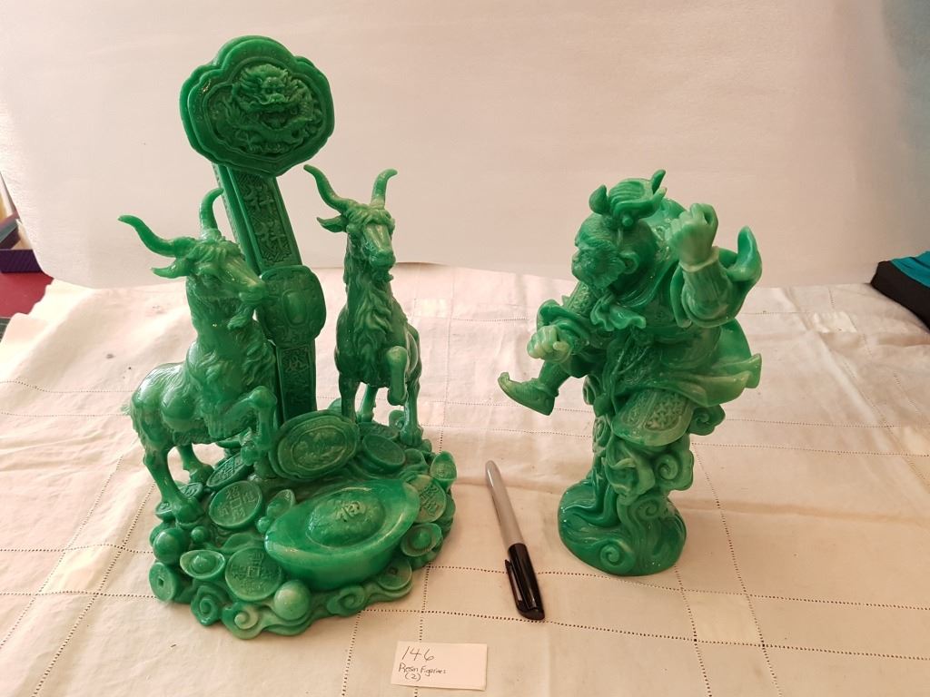 RESIN FIGURES, JADE COLORED, *LARGE, HEAVY* (QTY 2)