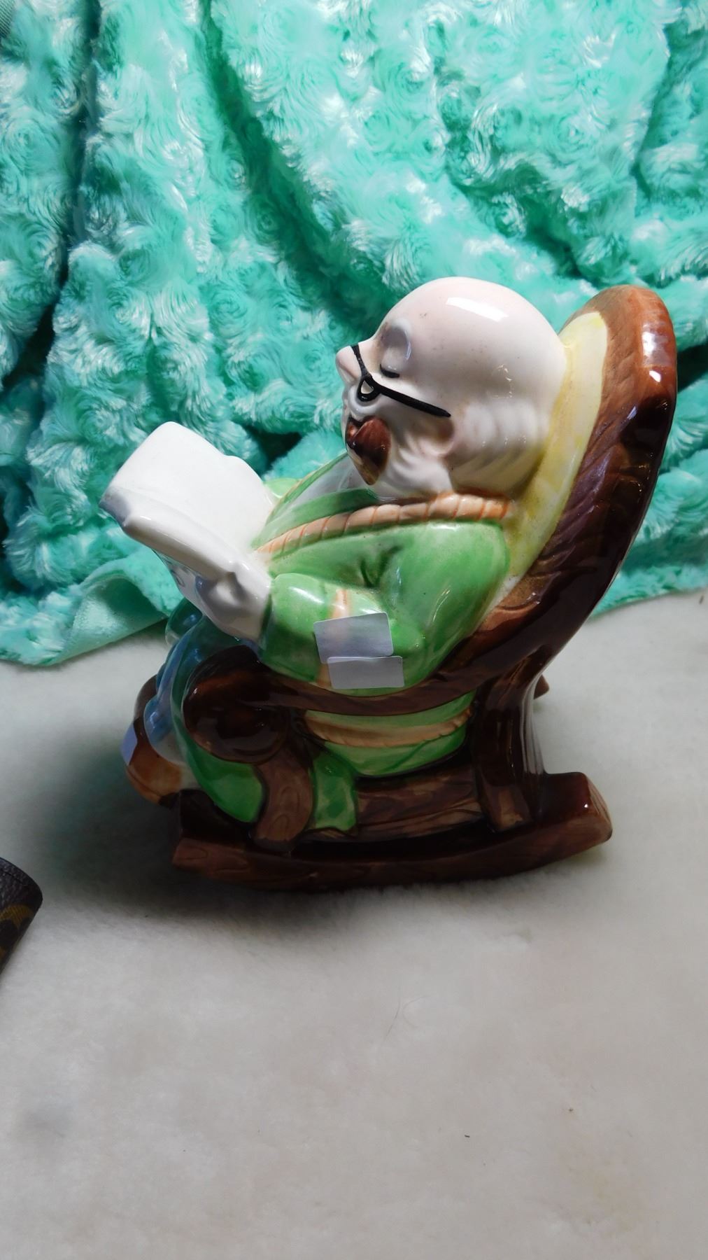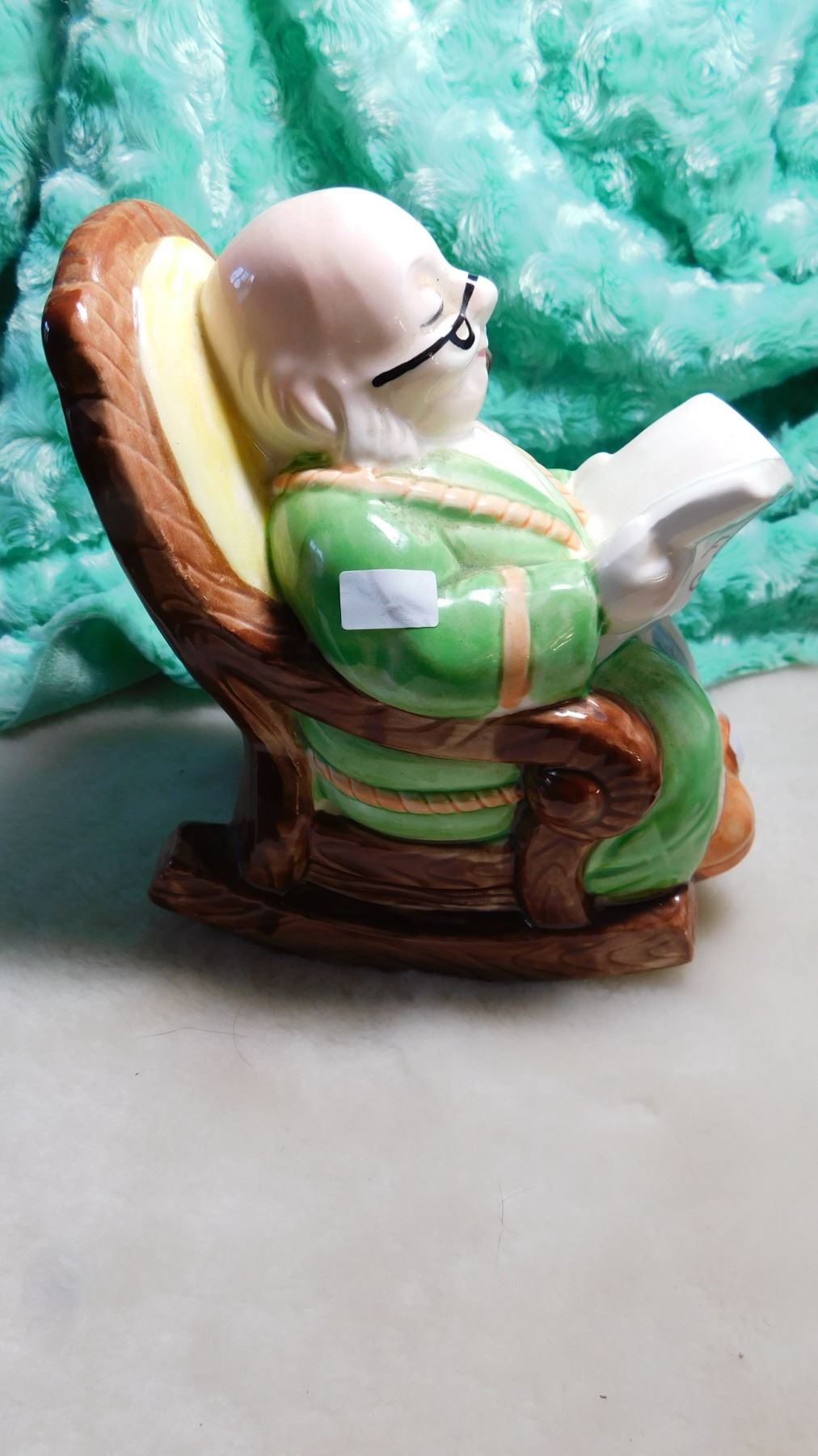 RETIREMENT FUND, CERAMIC, OLD MAN IN ROCKER, PIGGYBANK