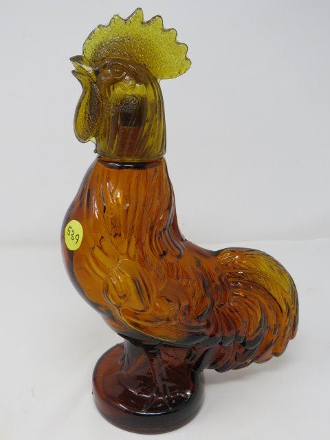 ROOSTER DECANTER (AMBER GLASS, UNIQUE) *NO CHIPS/CRACKS*