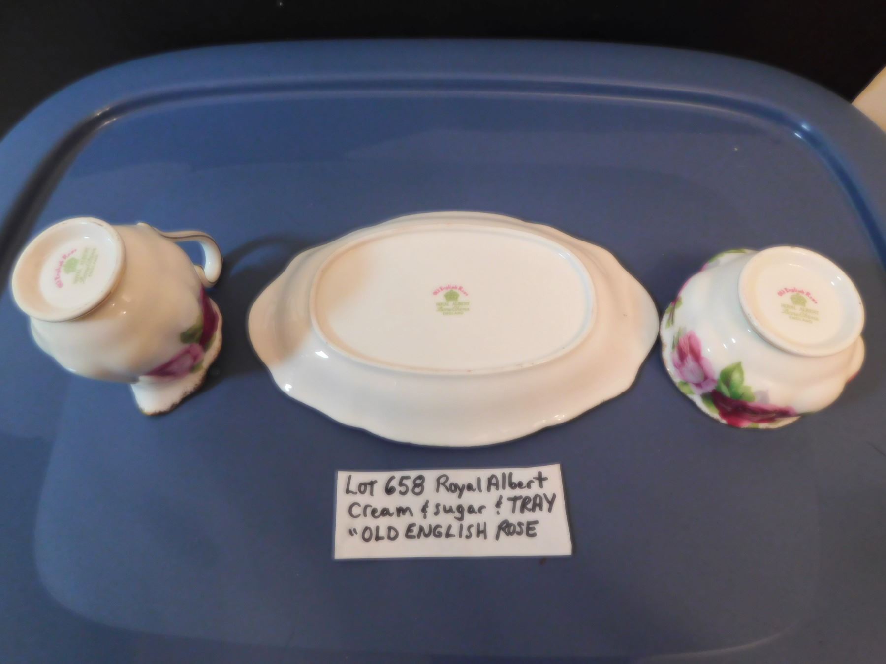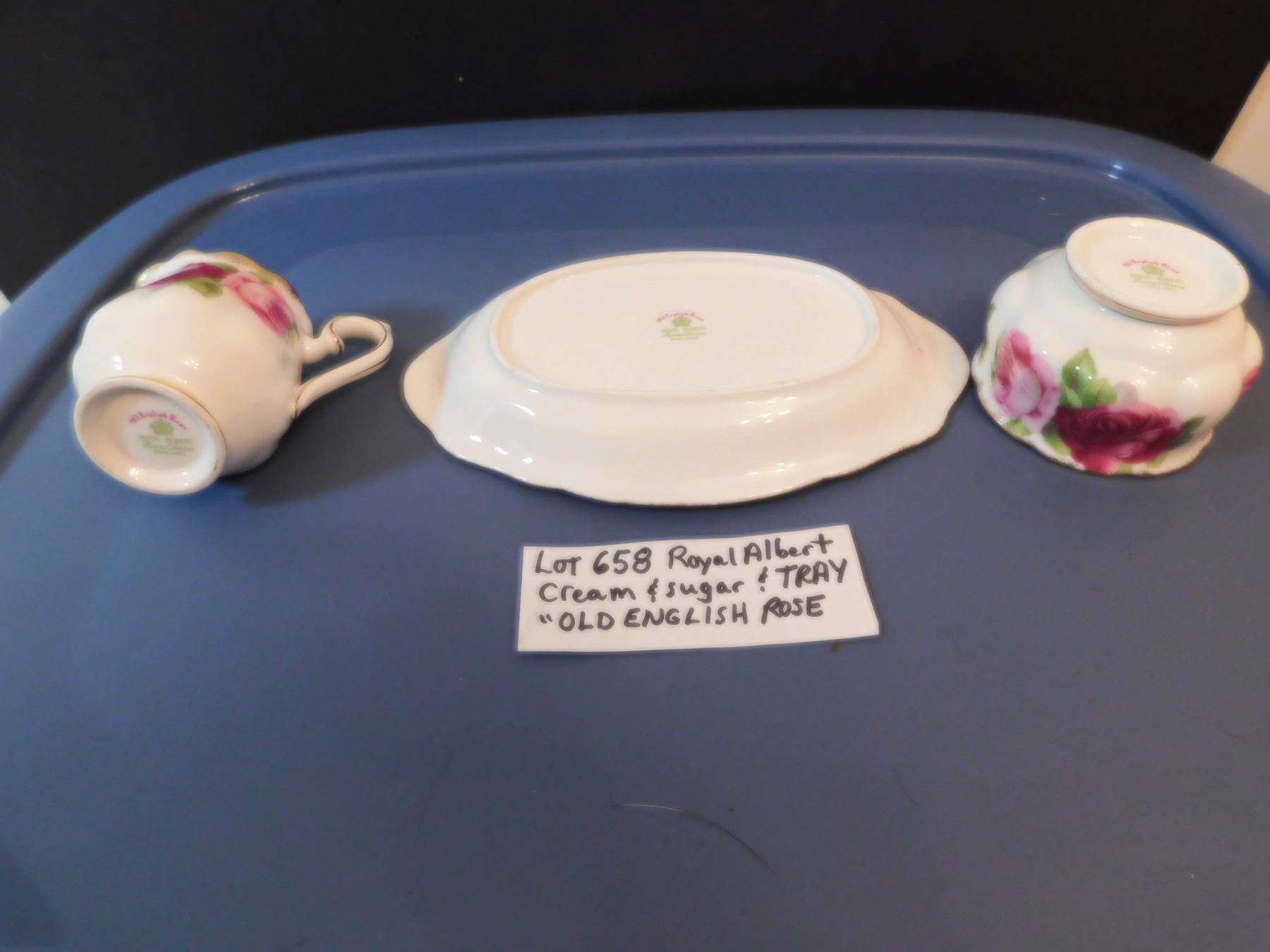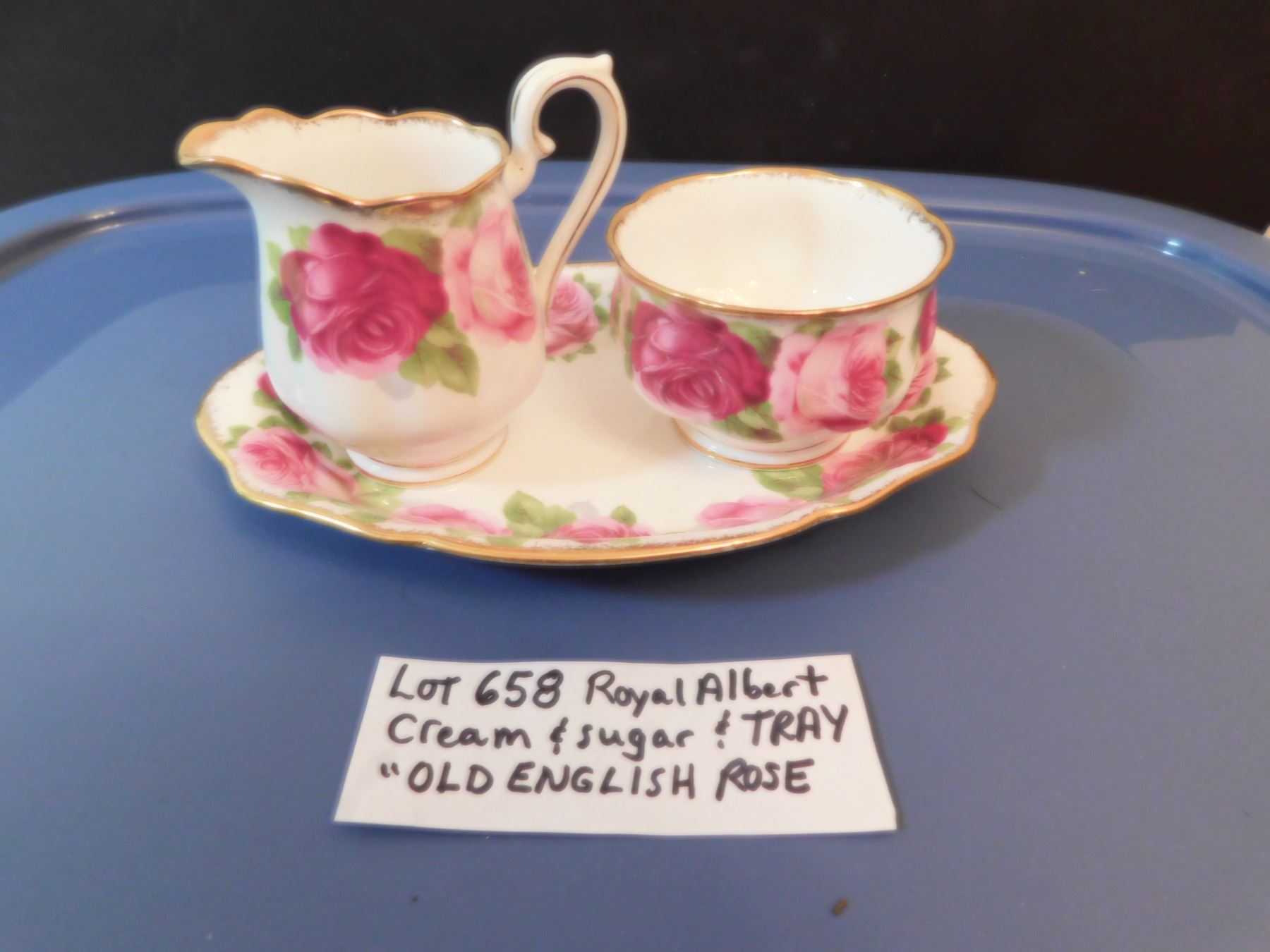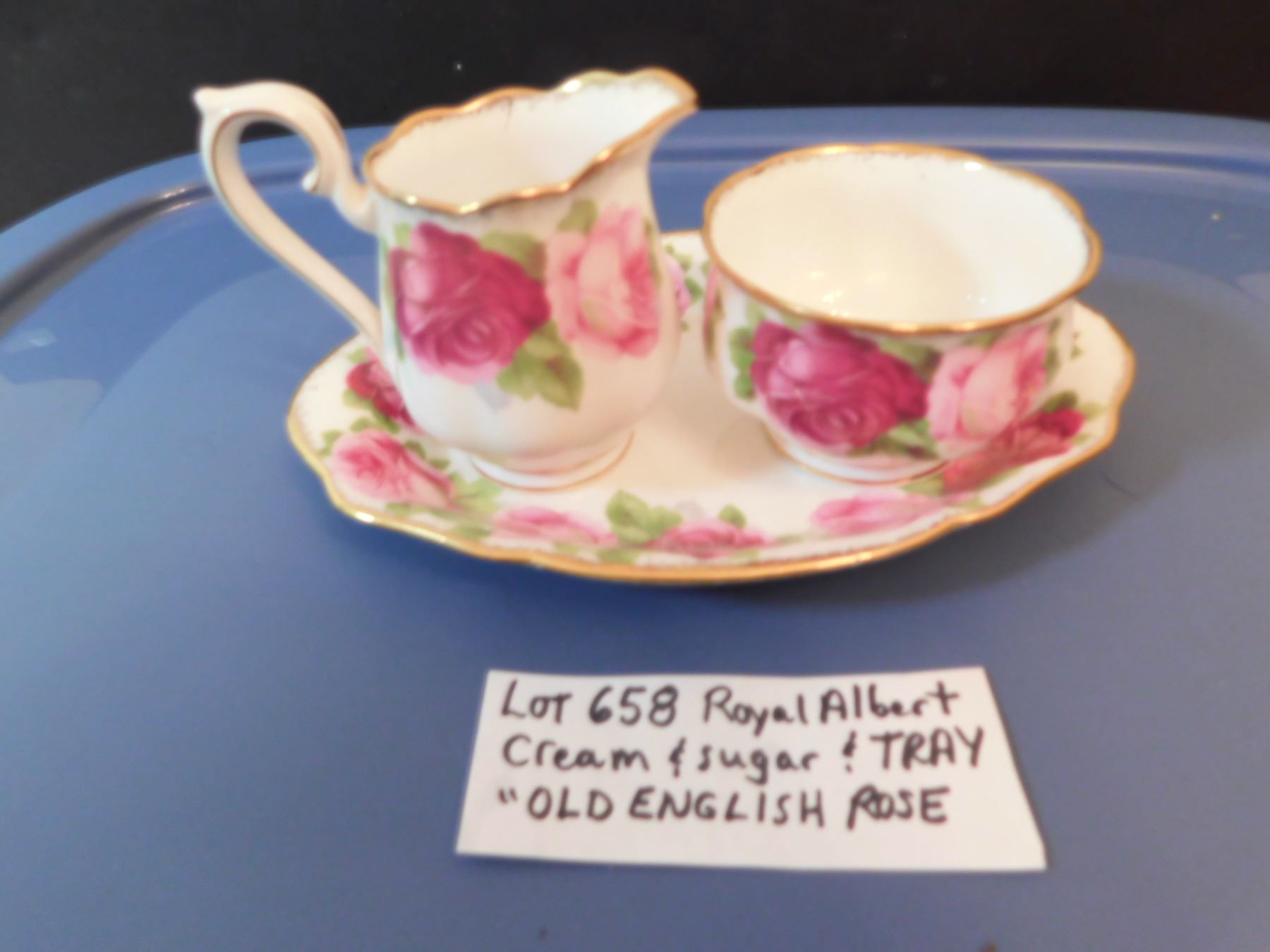 ROYAL ALBERT OLD ENGLISH ROSE CREAM, SUGAR & PLATE