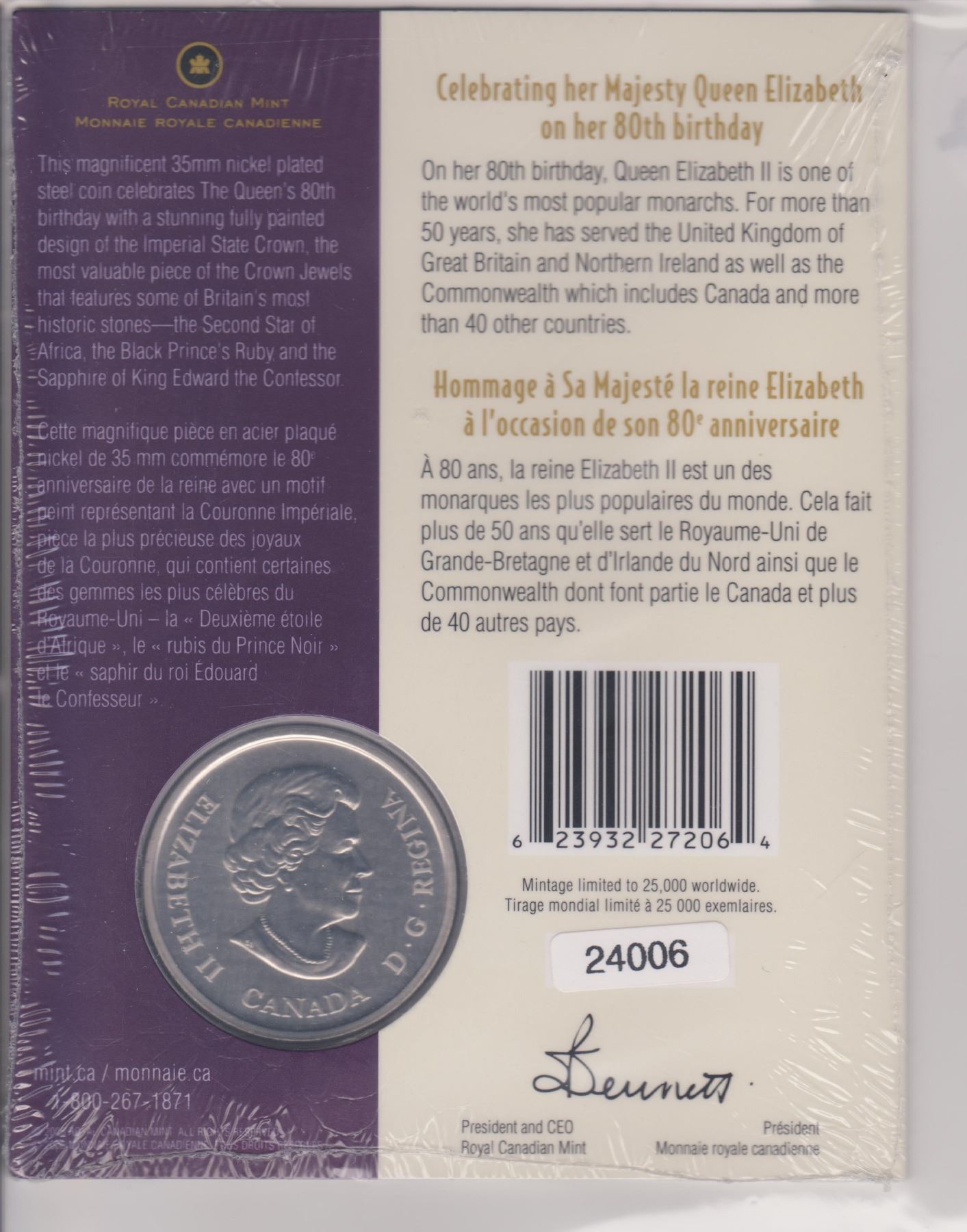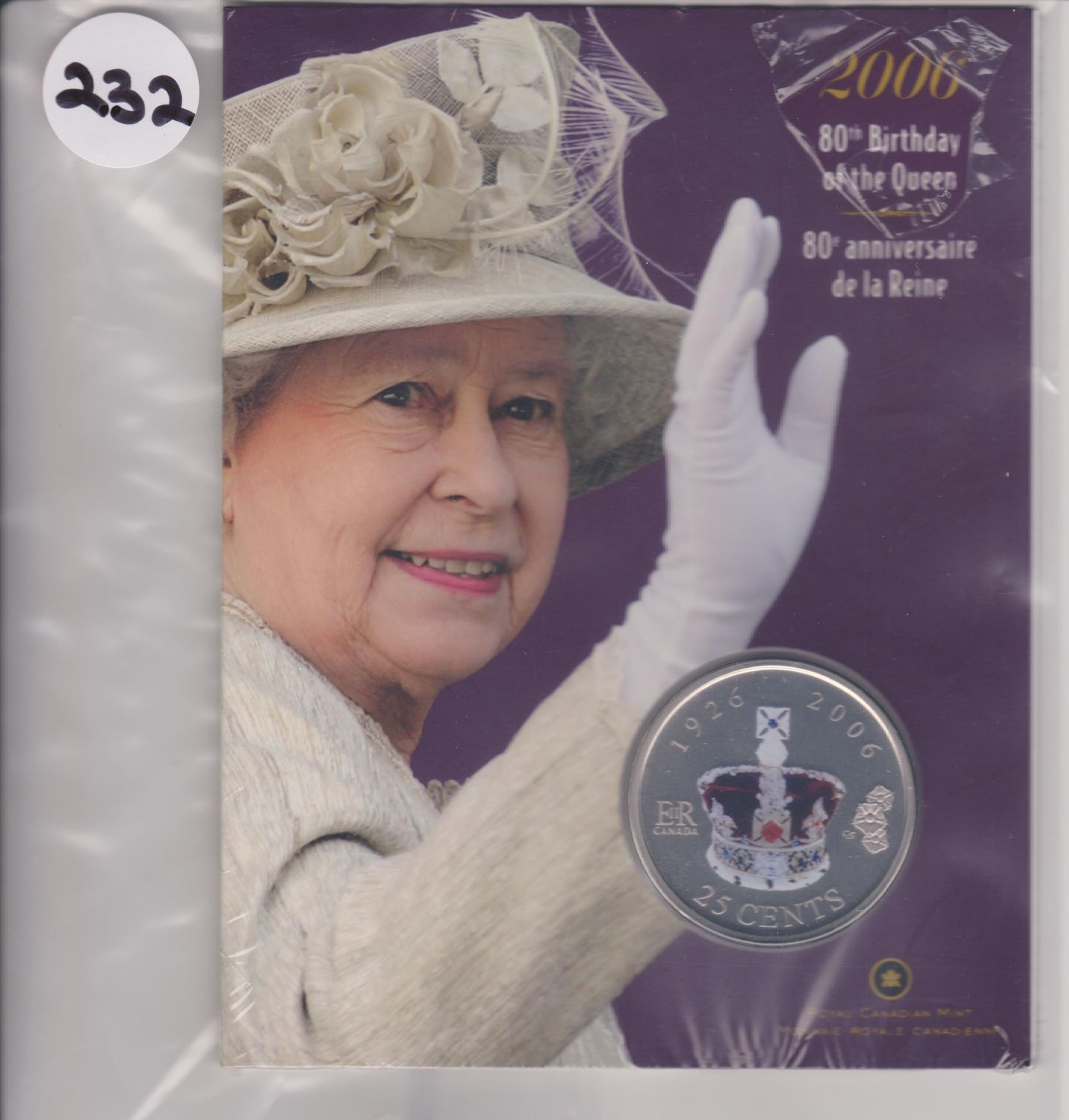 ROYAL CANADIAN MINT 2006, 80TH BIRTHDAY OF THE QUEEN, NICKEL PLATED STEEL 25 CENT COIN