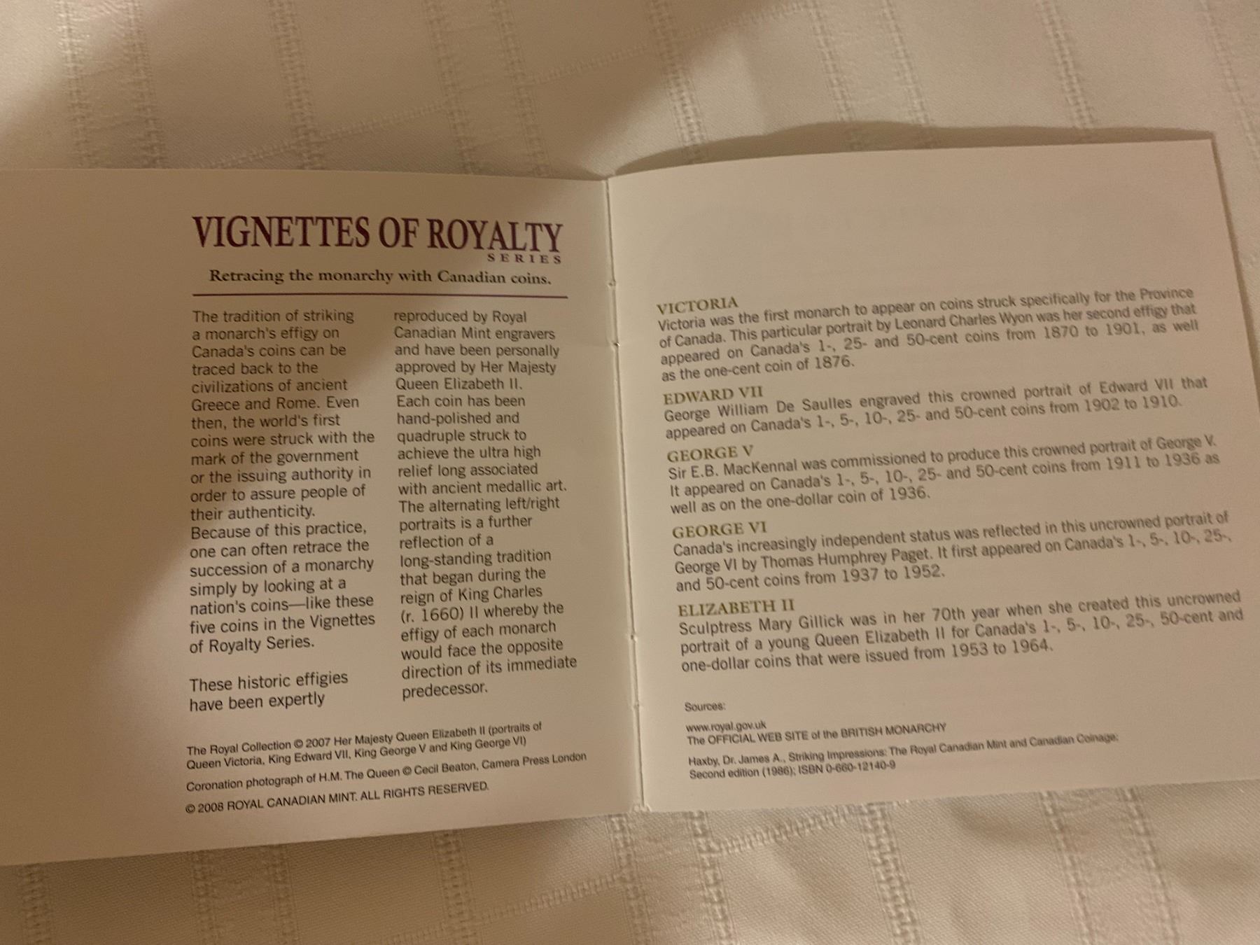 ROYAL CANADIAN MINT VIGNETTES OF ROYALTY SERIES BOOKLET 2008