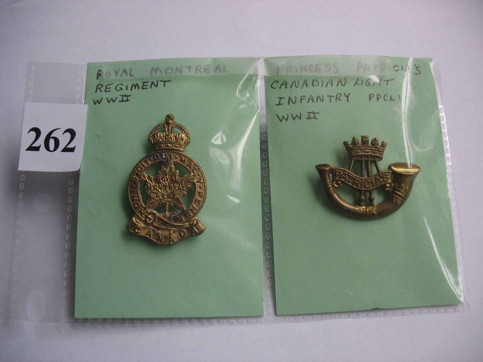 ROYAL MONTREAL REGIMENT & PRINCESS PATRICIA'S LIGHT INFANTRY CAP BADGES - WW II