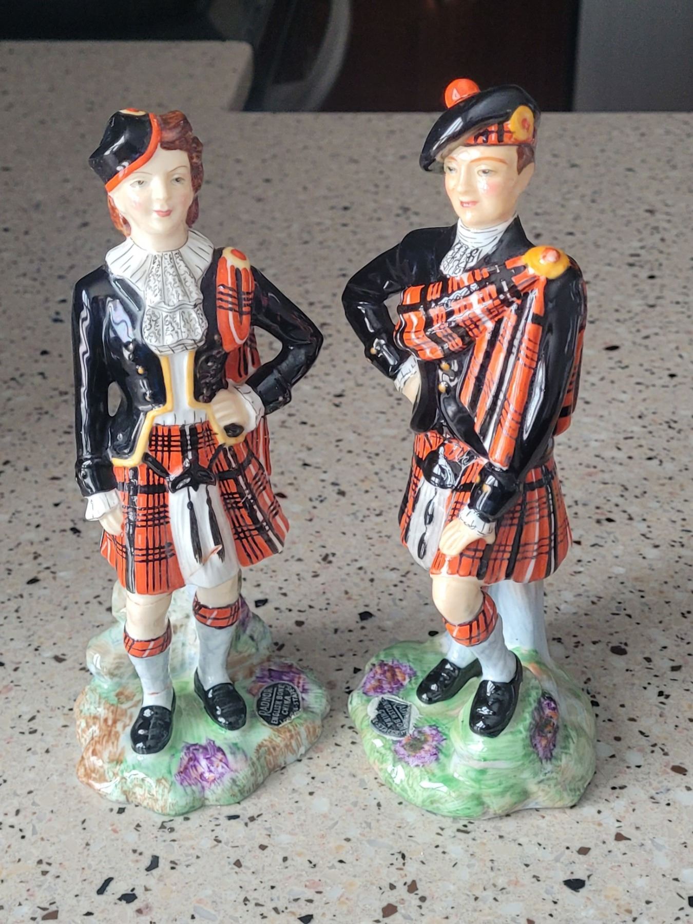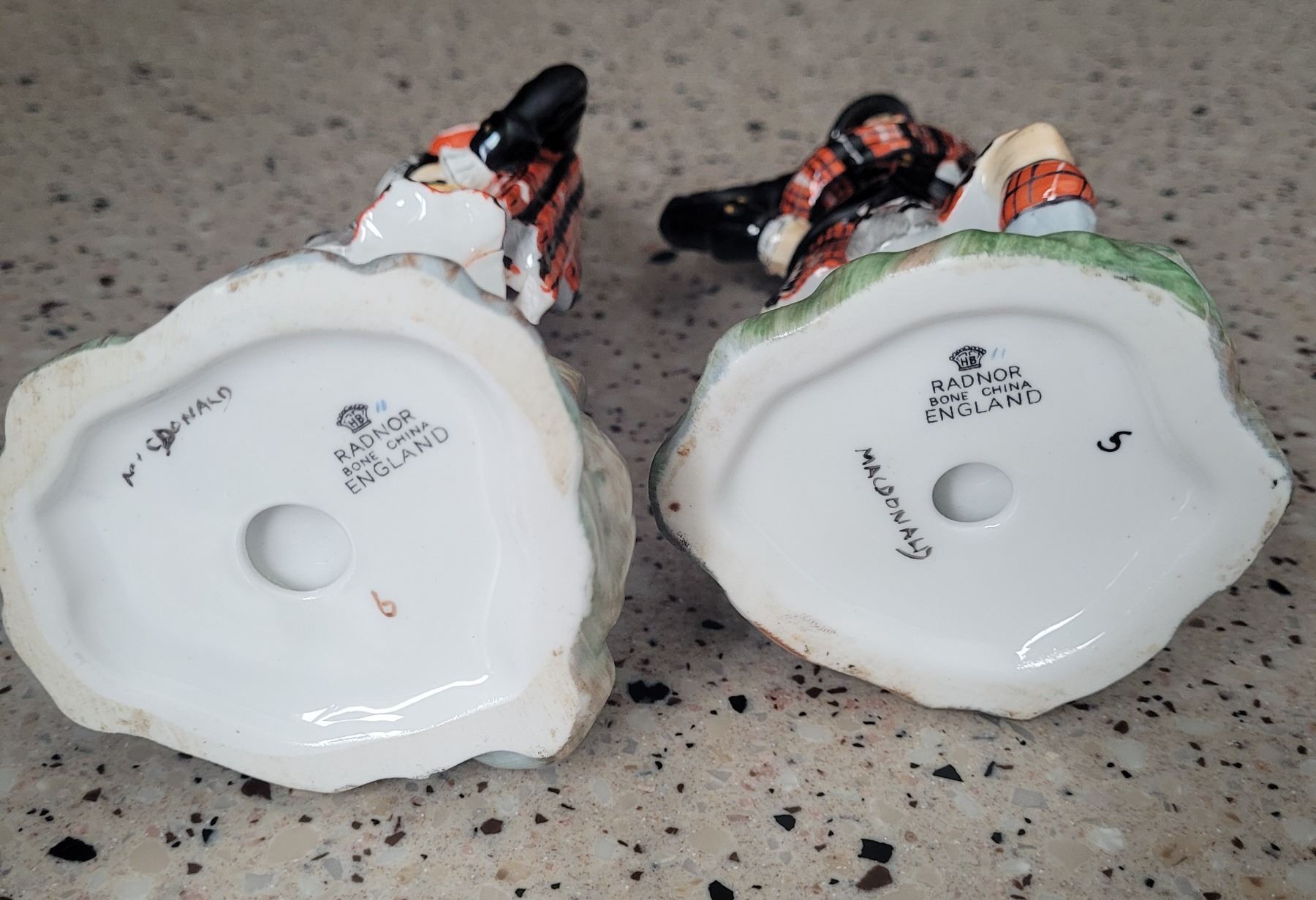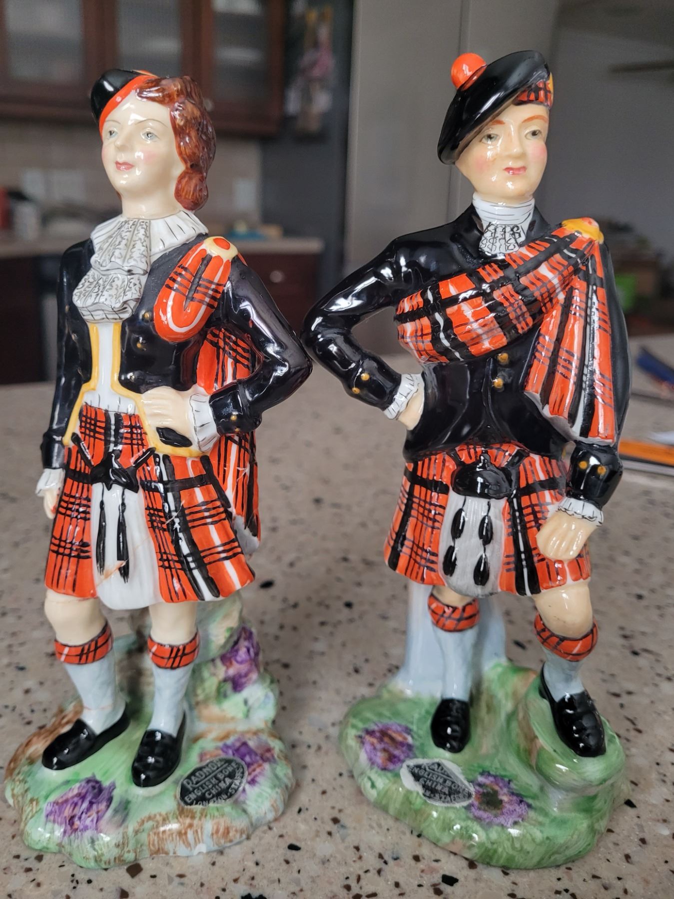 Radnor Bone China Scottish Figurines MacDonald set of 2 MN/Woman 7" repaired below woman's skirt