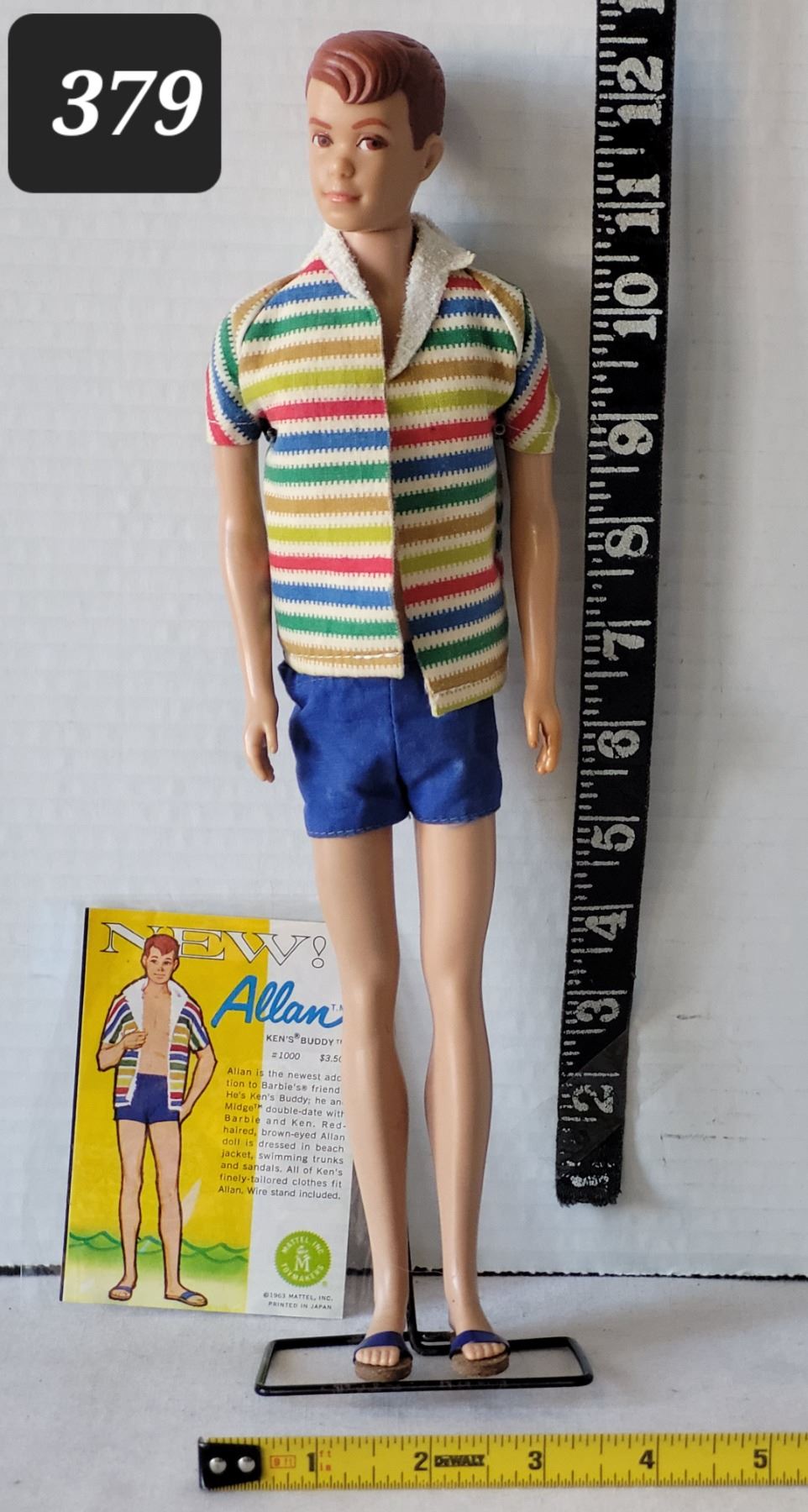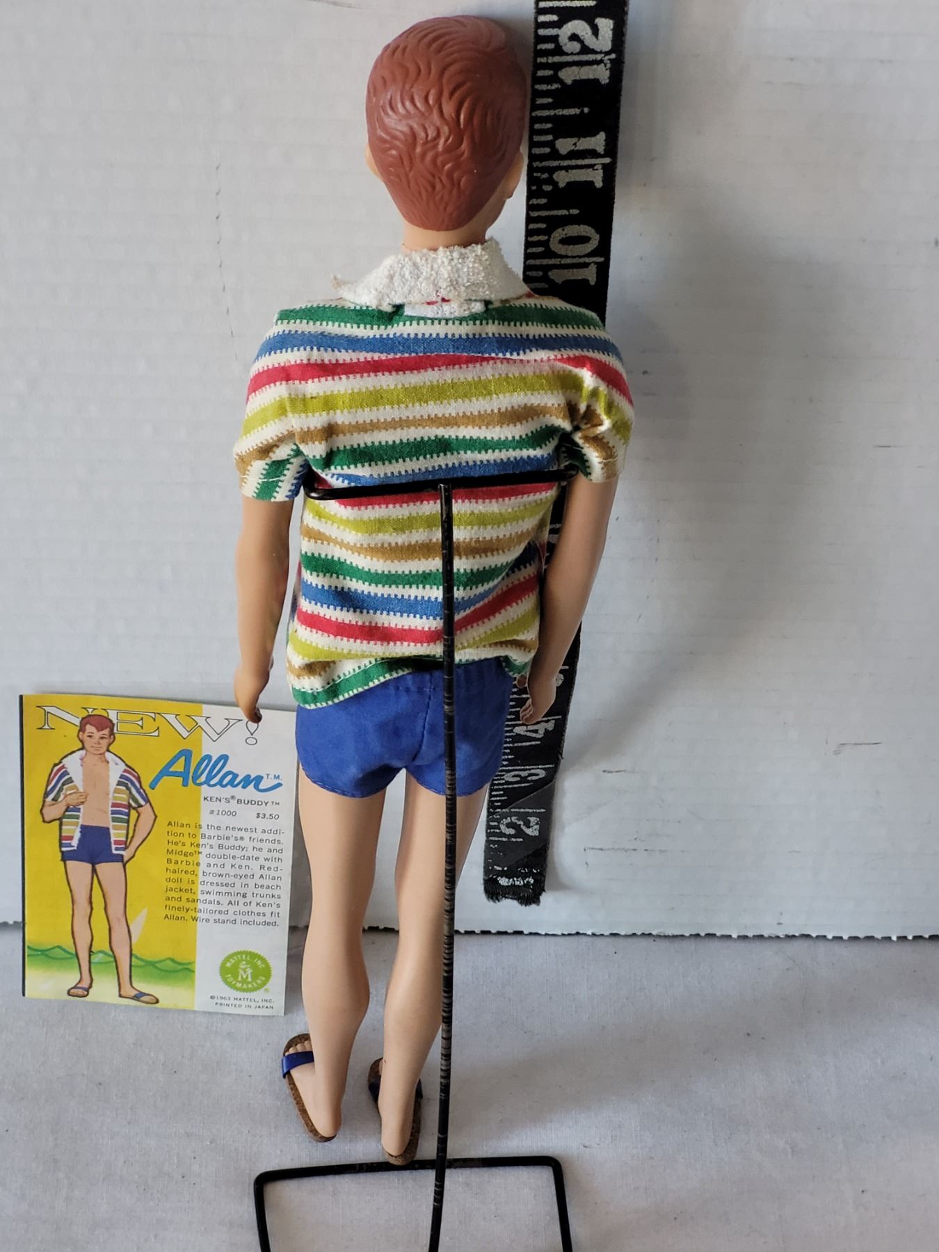 Rare 1963 debut straight leg Allan Barbie doll. Original clothes, stand & booklet. One owner.