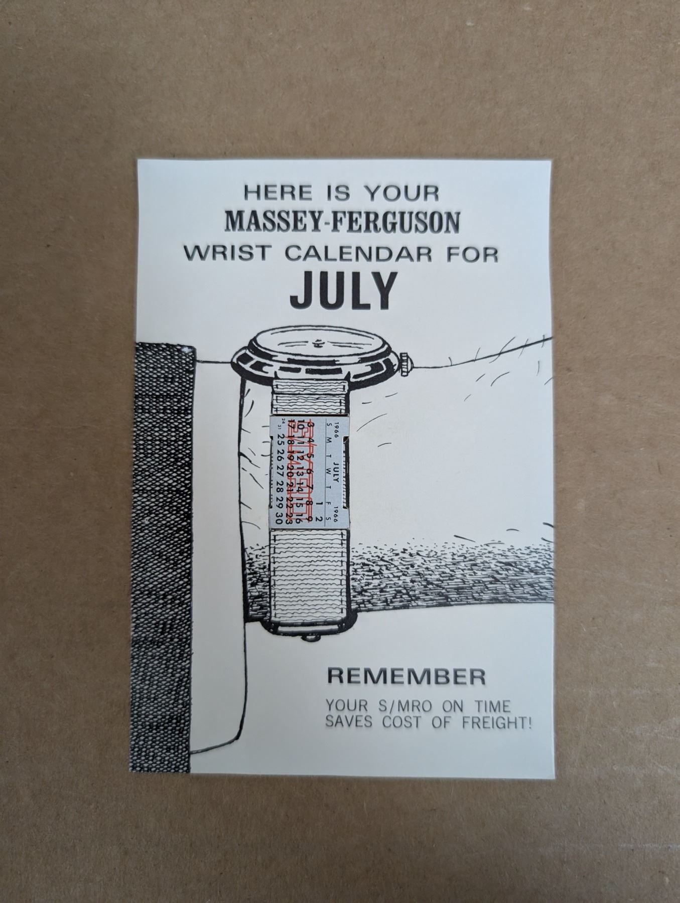 Rare 1966 Massey Ferguson Wrist Calendar for July