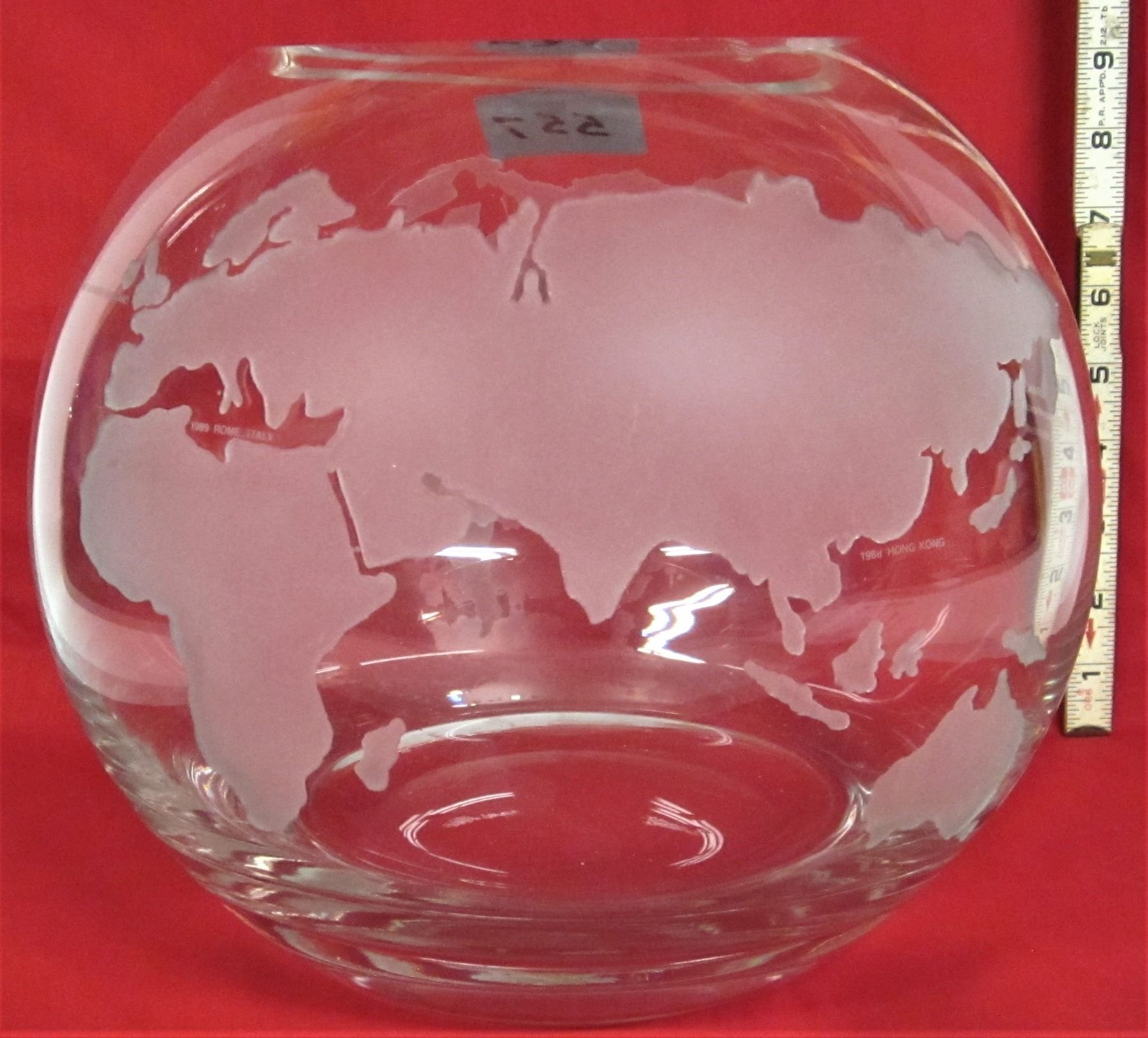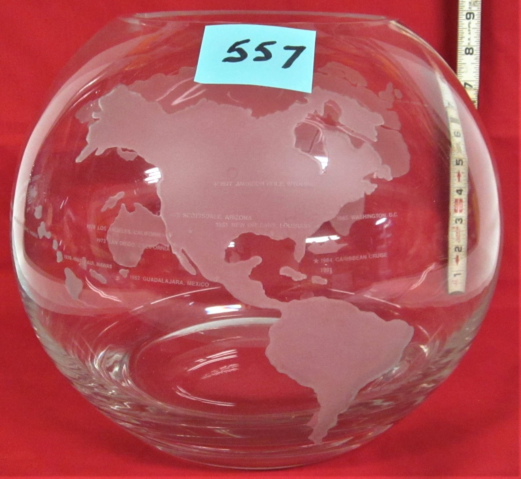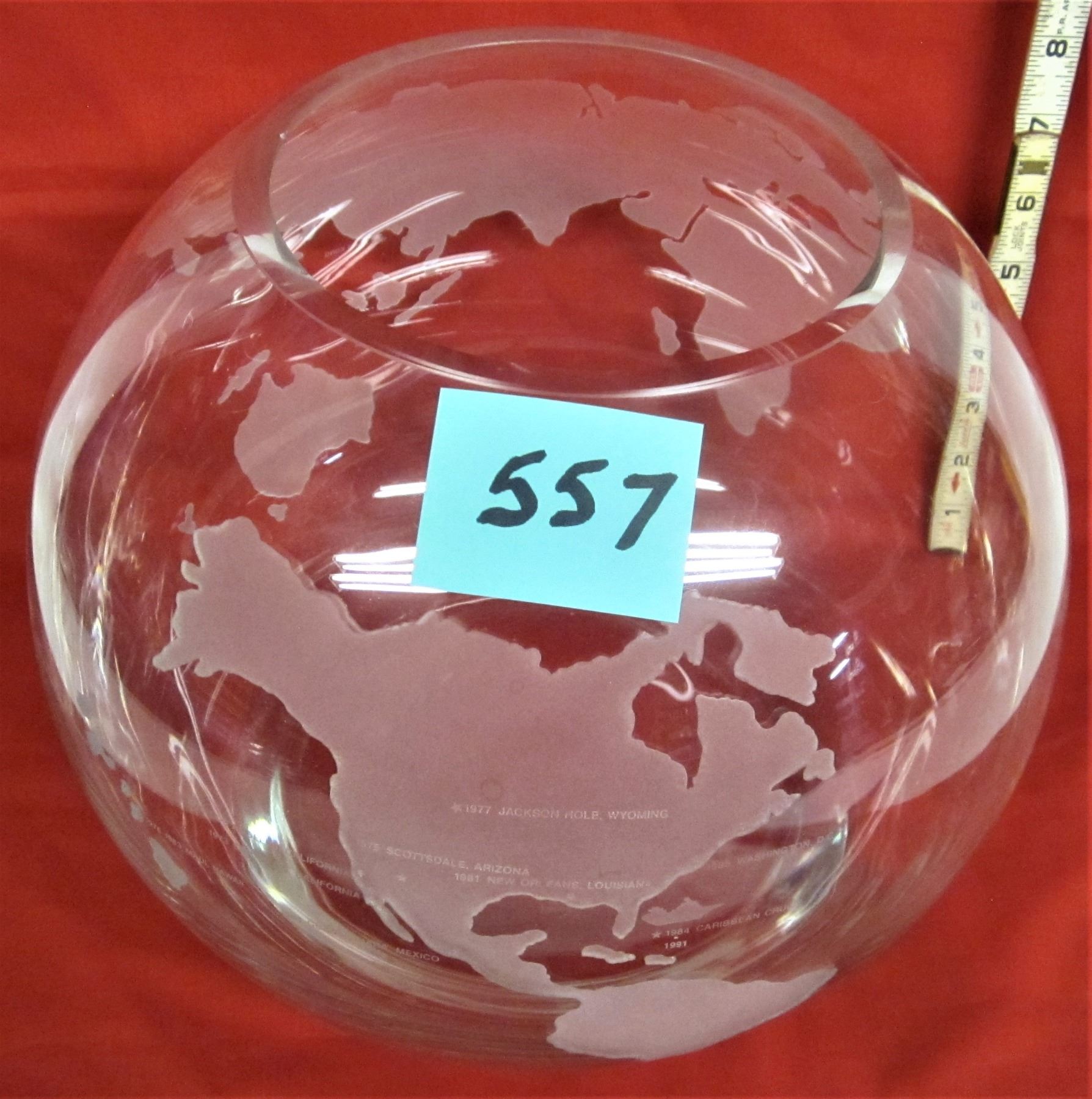 Rare 9" clear glass bowl WORLD GLOBE with etched frosted continents