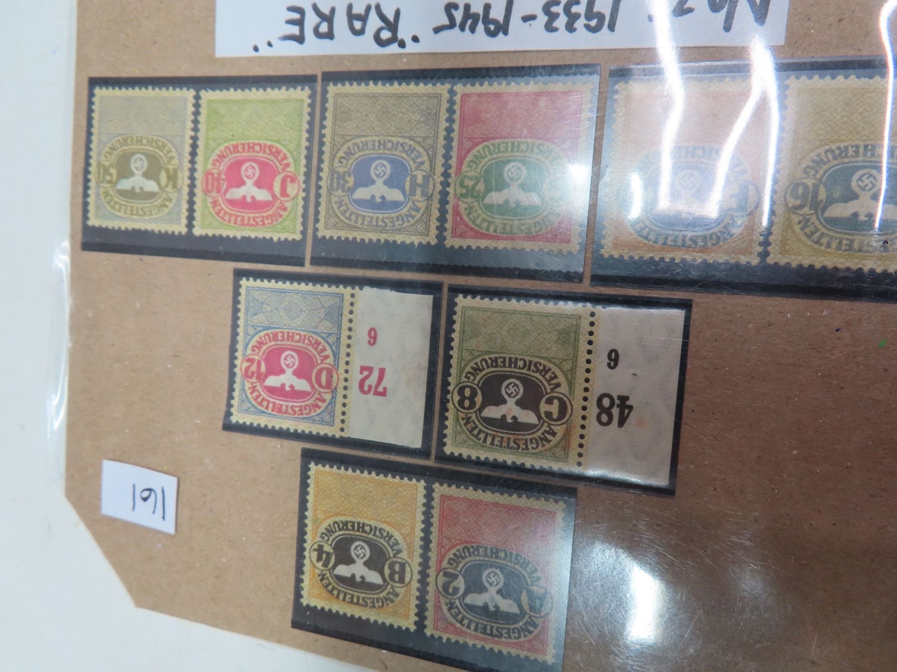 Rare Nazi employee insurance revenue stamps 1933-45 swastika-eagle emblem