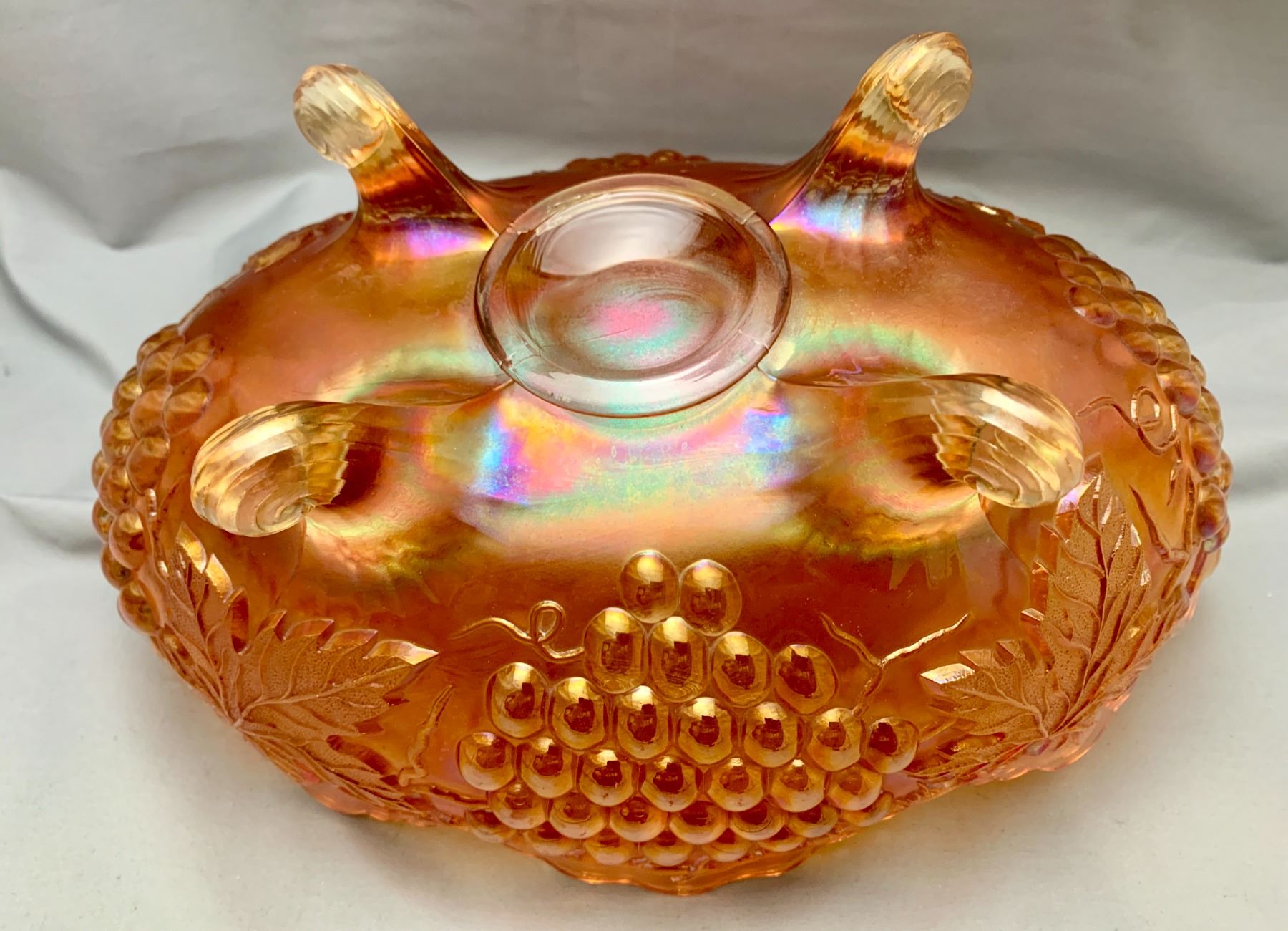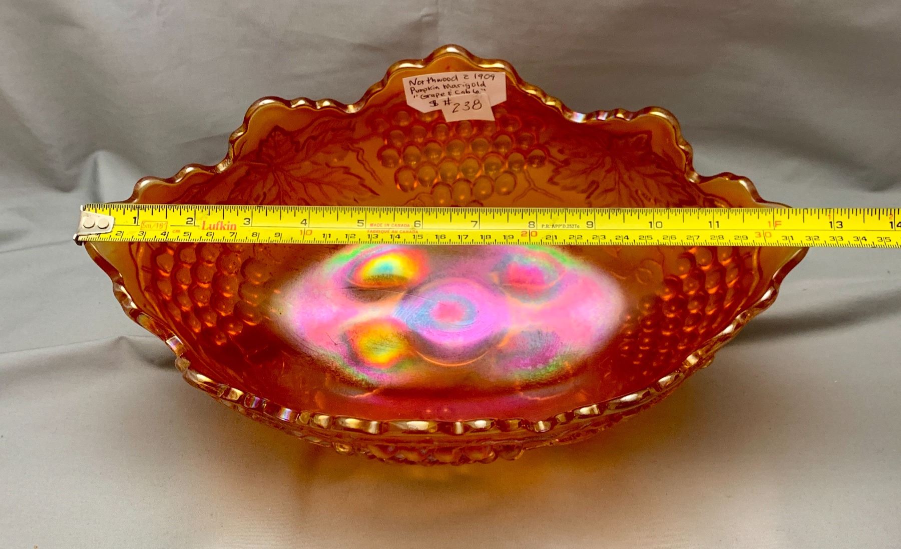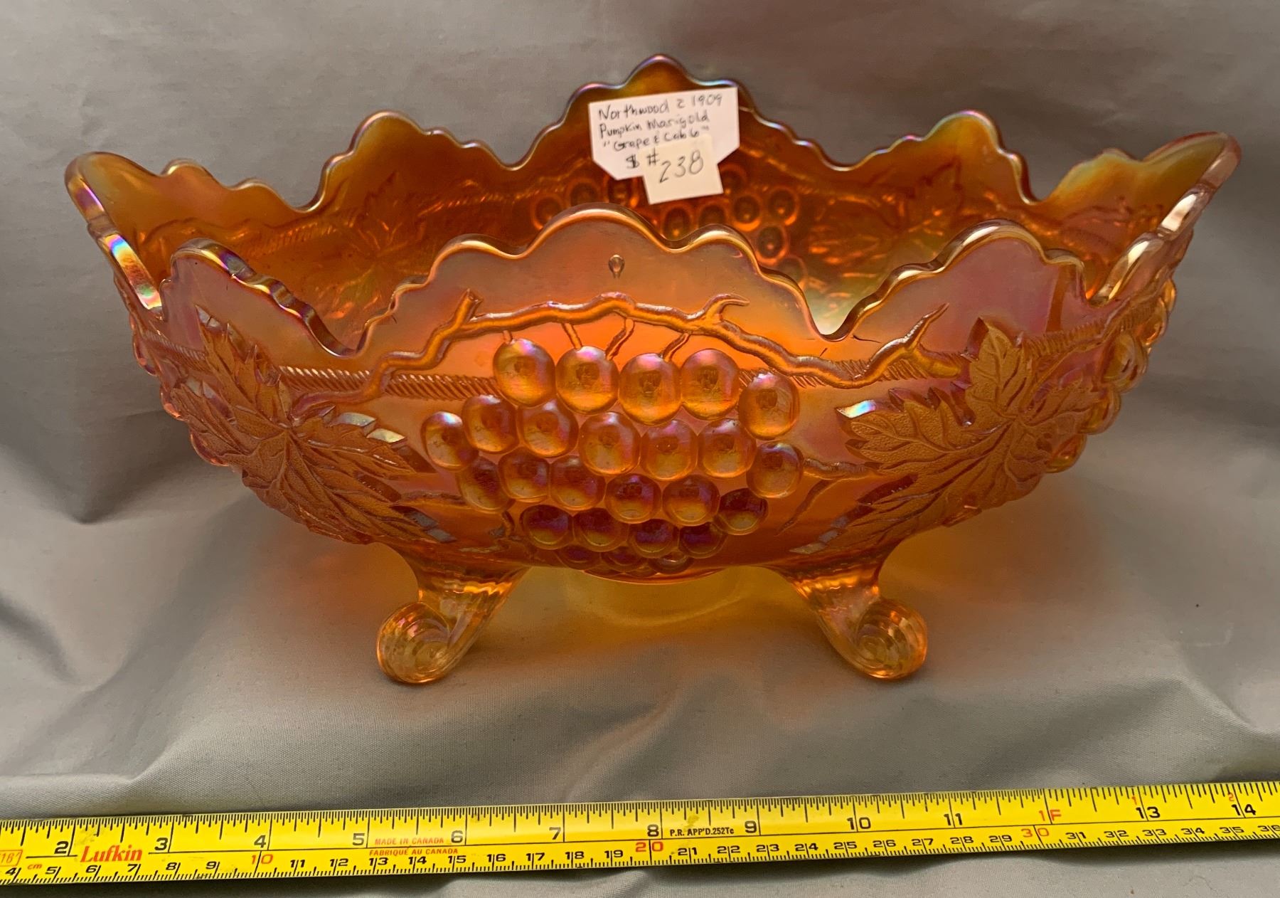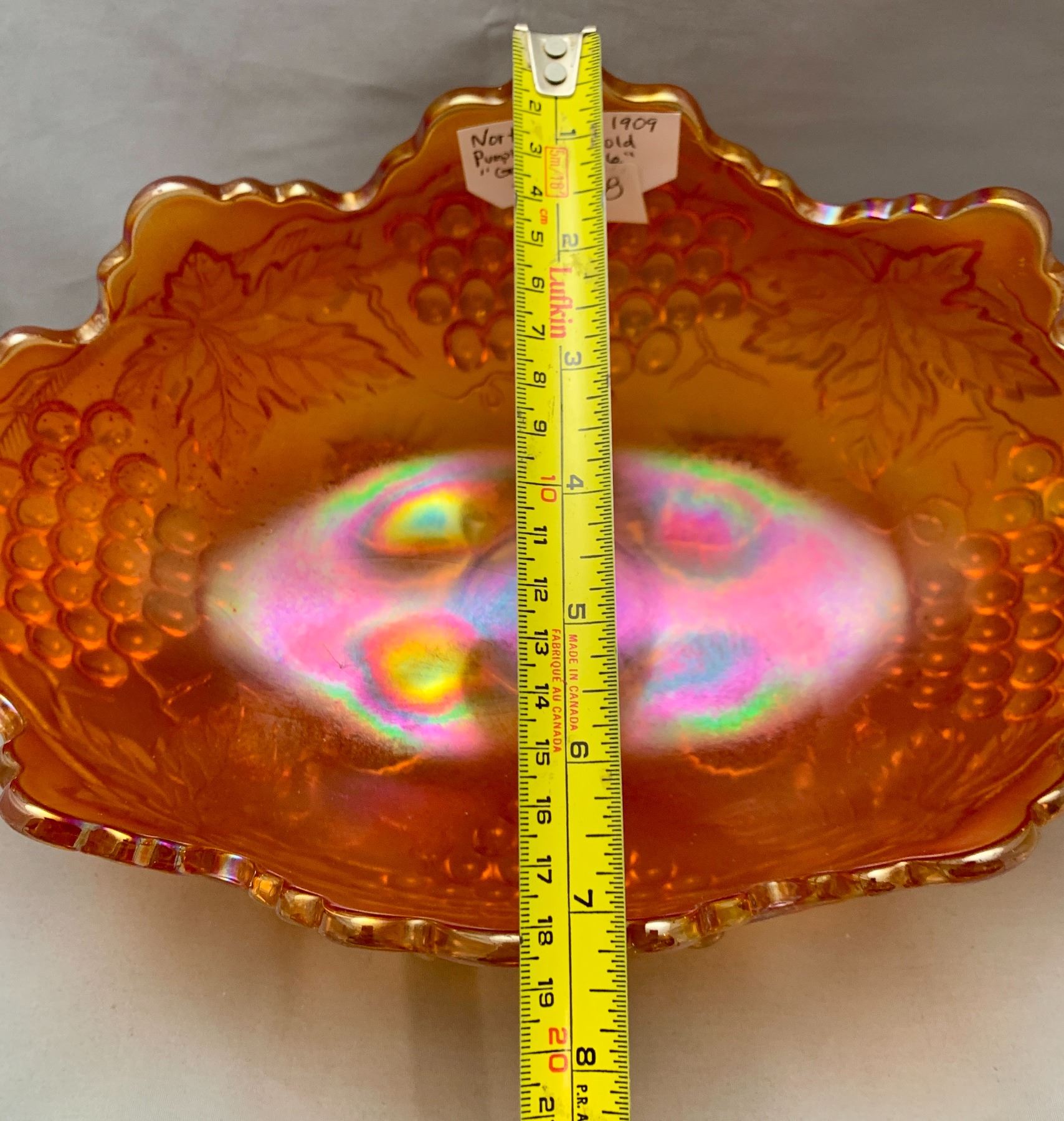 Rare - Northwood Pumpkin Marigold Grape + Cable 4 Footed Banana Boat Carnival Glass – Circa 1909